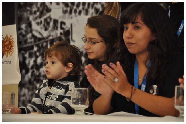 Morales comenzó haciendo una introducción respecto a qué tipo de organización es el CELS y cómo comenzó: “Es una organización que se fundó en 1979, organizada por un grupo de padres abogados, que tenían a sus hijos desaparecidos. La idea fue trabajar desde lo legal para traer verdad y justicia a los crímenes de la dictadura.” Luego, dijo que a partir del '83 “además de las demandas de los hechos del pasado, aparecieron reclamos por la violencia policial y la exclusión de varios grupos de personas”. En este sentido, dijo que los datos en común entre la fundación de SUTEBA y el CELS fueron la “insignia de los Derechos Humanos, porque cuando terminó la dictadura militar el mástil que ambas toman son los Derechos Humanos”. También destacó que hubo “un punto importante entre las organizaciones de Derechos Humanos y los sindicatos en el cual empiezan a compartir una agenda de lucha contra los procesamientos por cortes de ruta, manifestaciones, represiones policiales a manifestaciones sociales, etc.” Después admitió que “a partir del 2003 se pueden ver avances en materia social”, pero que “a la vez se siguen viendo situaciones de violencia preocupantes”. Para cerrar dijo: “El análisis que se hace desde el CELS es que la justicia tiene un rol importante. La salida para nosotros sigue siendo la justicia, así como la respuesta a la violación de los Derechos Humanos después de la dictadura fue la respuesta, hoy es lo mismo. La justicia puede dar una respuesta y debe hacerlo.”