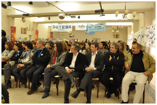 Baradel destacó el trabajo que vienen haciendo desde del SUTEBA en conjunto con la Comision Mixta de Salud y Seguridad del Empelo Público (COMISASEP) “para discutir como mejora las condiciones de trabajo en cada uno de los lugares de trabajo de los estatales.” Incentivo a los docentes a trabajar en comisiones: “De lo que ustedes puedan discutir en cada una de las comisiones y las conclusiones que puedan sacar, nosotros asumimos el compromiso para tenerlo como política gremial y plan de acción para, luego, llevarlo como reclamo al gobierno Nacional y provincial para mejorar la escuela publica.” Y terminó diciendo: “La escuela no debe reproducir el orden social existente. No tiene que enseñar que pobres hubo siempre, la escuela debe enseñar que en un país que produce alimento para 400 millones de personas y que tiene 40 millones de habitantes no pueden haber chicos con hambre.”