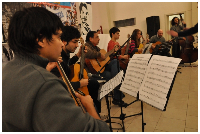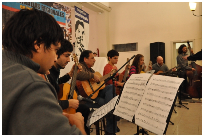 Algunos minutos después del medio día finalizó el panel y se dio paso a Zenón Centellas, compositor boliviano, que acompañado en guitarra por el maestro Quique De Olaso interpretaron: Surimana (huayno), Granadita (huayno), Ay que triste es quererte y Cuatro estamos en tu puerta (carnavalito). Luego, fue momento del almuerzo.