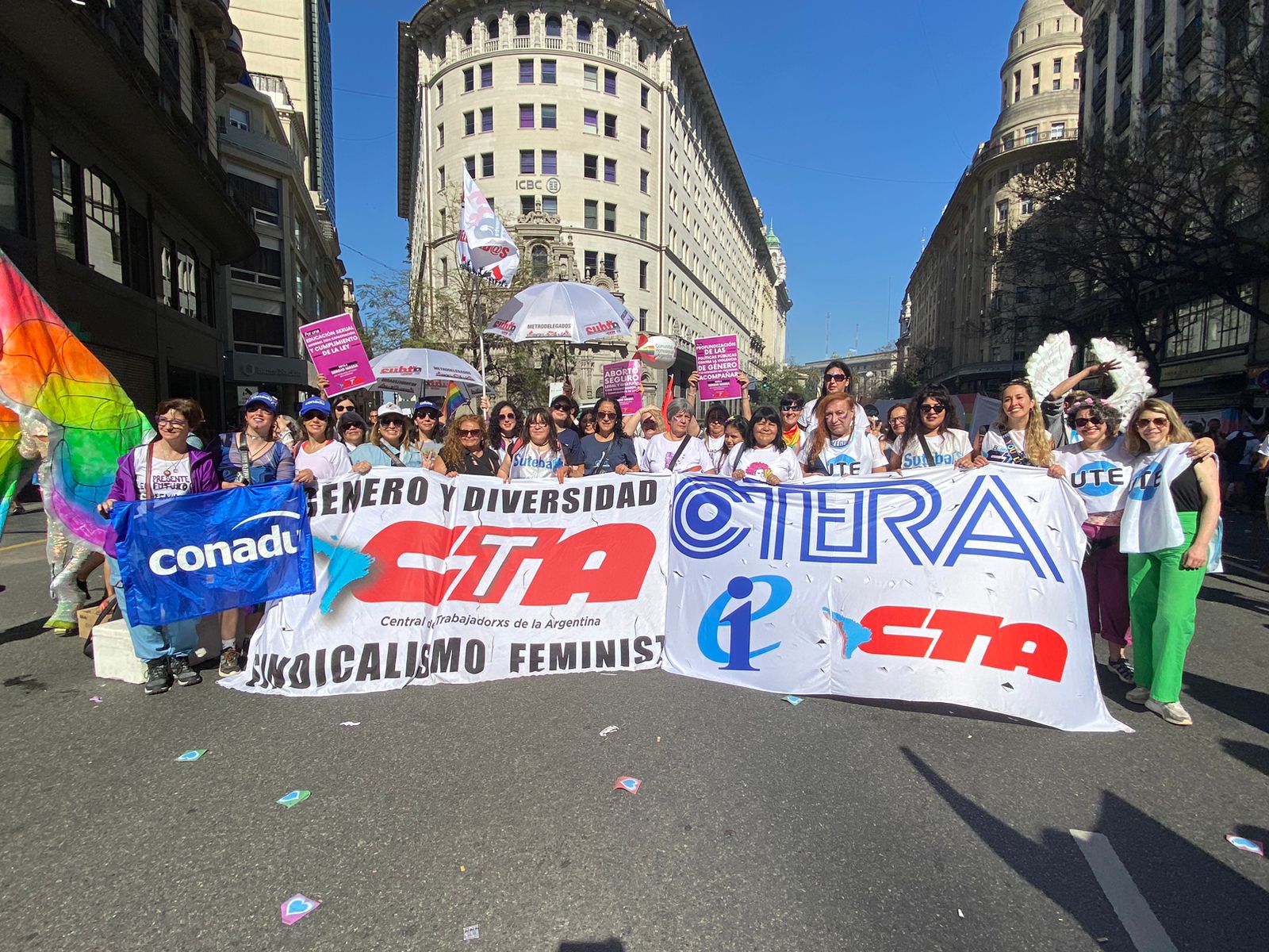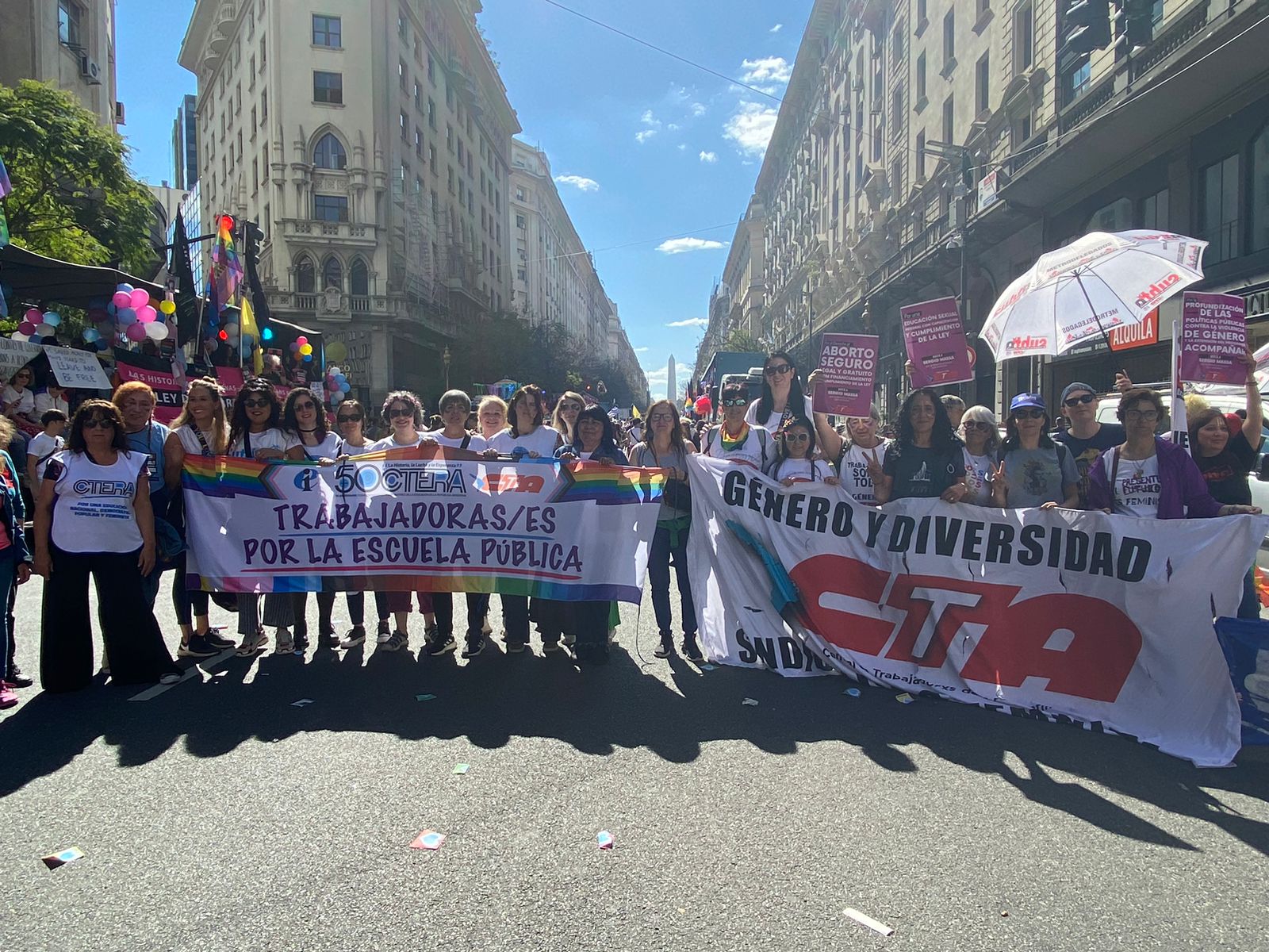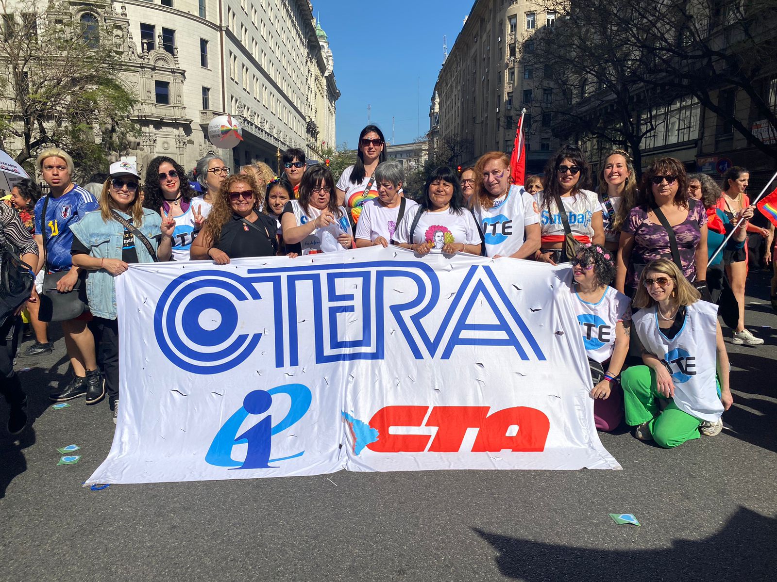 El SUTEBA formó parte, junto a la CTERA y la CTA de lxs Trabajadorxs, de la 32° Marcha del Orgullo LGBTINB+, realizada el sábado frente al Congreso bajo la consigna ORGULLO ES DEMOCRACIA.
