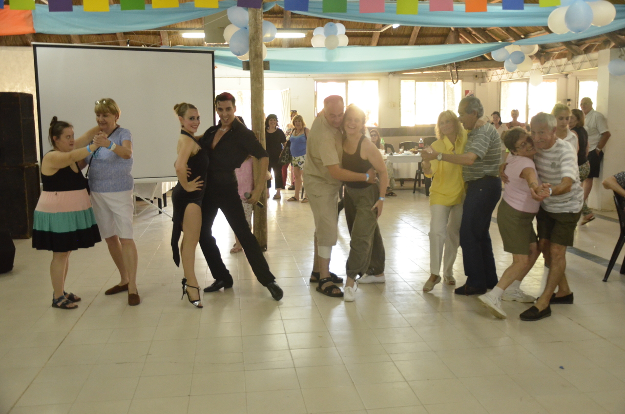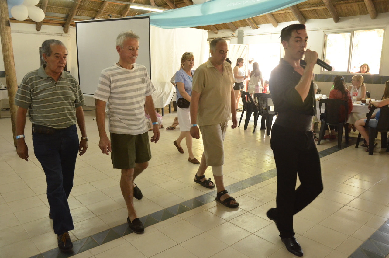 Mientras los jubilados disfrutaban de un rico asado, la fiesta tuvo shows y sorteos. Primero los animadores Anita y Laureano entretuvieron a los presentes cuando le sacaron brillo a la pista bailando "Gallo ciego" y "Milonga de mis amores", y después cuando brindaron una clase de tango a los jubilados de cada seccional.