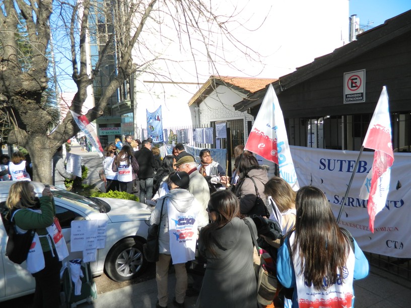 Tras no tener respuesta de las autoridades, compañeros de SUTEBA, el Frente Gremial Docente Bonaerense (FGDB), y la CTA (ATE y Judiciales) decidieron tomar la Delegación San Miguel del IOMA para exigir la inmediata solución e instalación de la conectividad en dicha delegación.