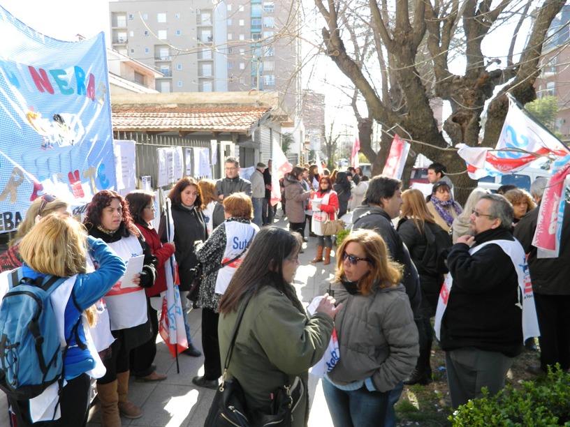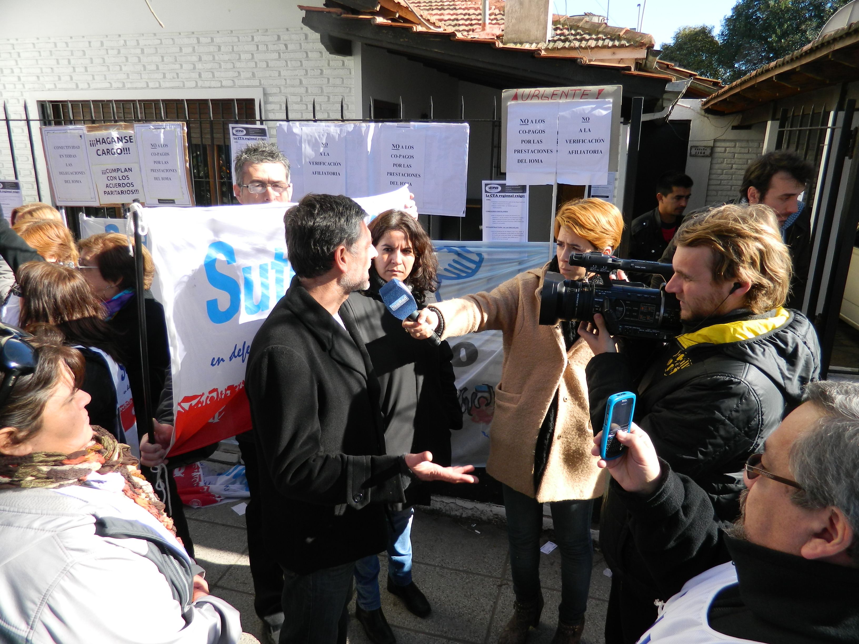 Tras no tener respuesta de las autoridades, compañeros de SUTEBA, el Frente Gremial Docente Bonaerense (FGDB), y la CTA (ATE y Judiciales) decidieron tomar la Delegación San Miguel del IOMA para exigir la inmediata solución e instalación de la conectividad en dicha delegación.