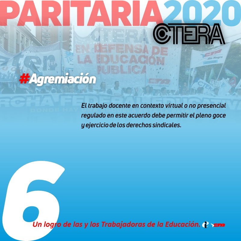 6. AGREMIACIÓN. El trabajo docente en contexto virtual o no presencial regulado en este Acuerdo debe permitir el pleno goce y ejercicio de los derechos sindicales.