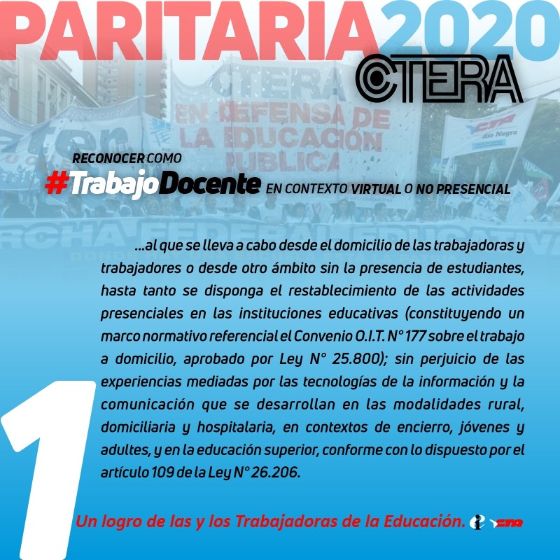 Esta Paritaria es un avance más en la construcción de diálogo y consenso en estos tiempos tan difíciles que vive nuestro país y el mundo, y es el cumplimiento de la Ley de Financiamiento Educativo y de convocatoria a la Paritaria Nacional Docente, derecho cercenado por la anterior gestión.