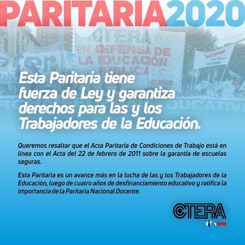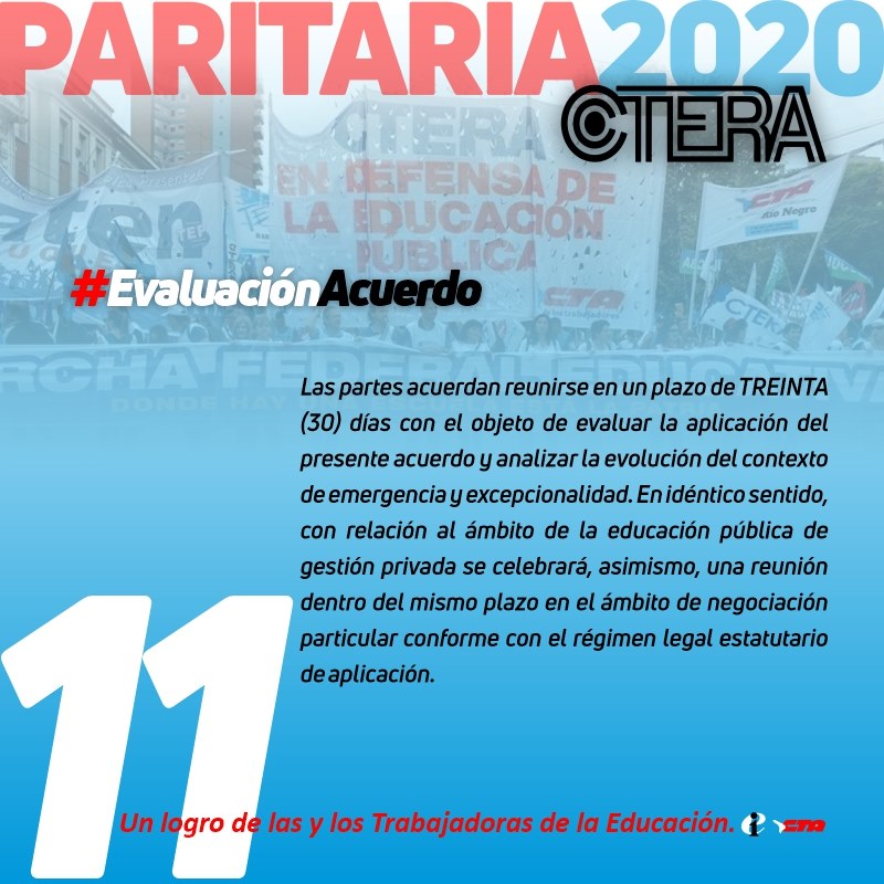 La CTERA monitoreará el cumplimiento de este Acuerdo Paritario para realizar una evaluación de su cumplimiento.