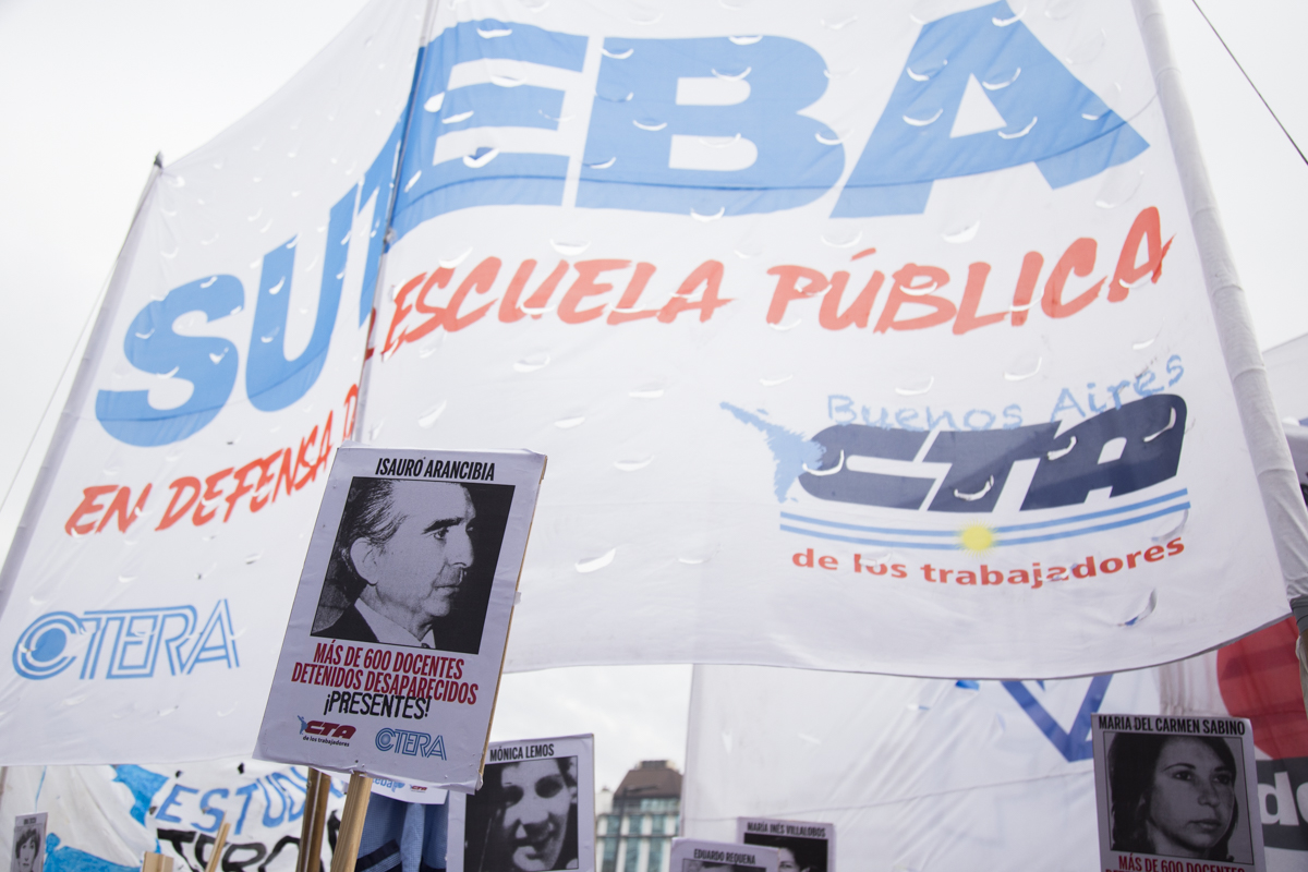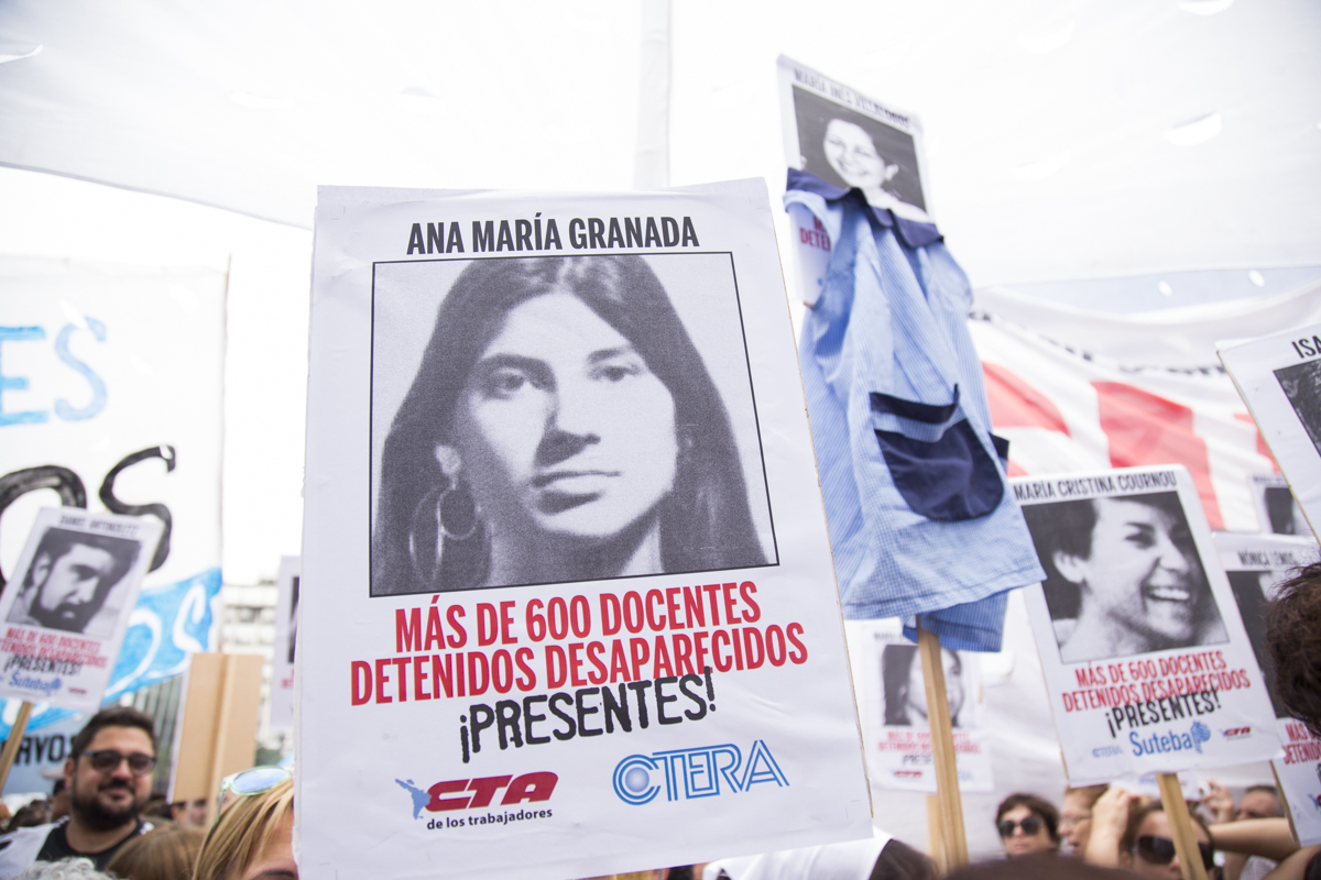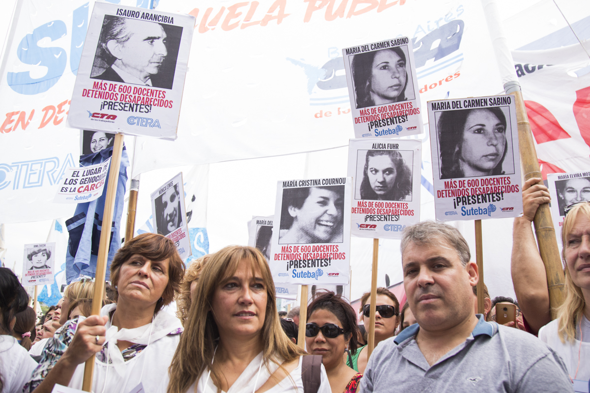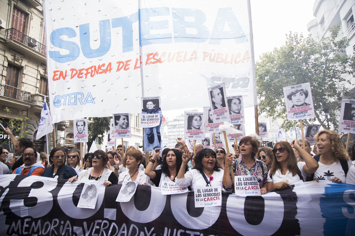 Su Subsecretaria, Mónica Grandoli, sumó: "Salimos a la calle también por el cercenamiento por parte del Gobierno de los Derechos de lxs Docentes, nuestrxs alumnxs y del pueblo trabajador. Acompañamos a todos los organismos de DDHH que sufrieron en carne propia la Dictadura Cívico Militar y Eclesiástica y que nos recuerdan permanentemente que no tenemos que parar de luchar".