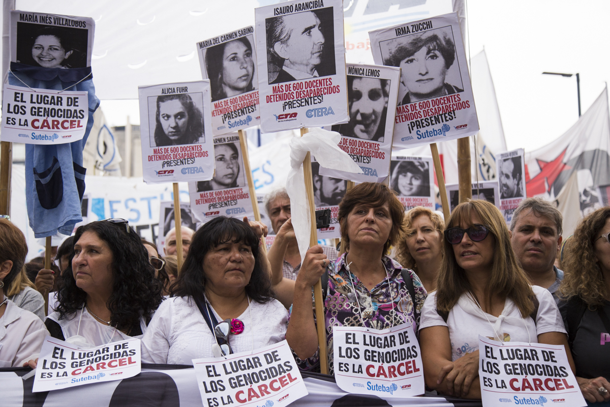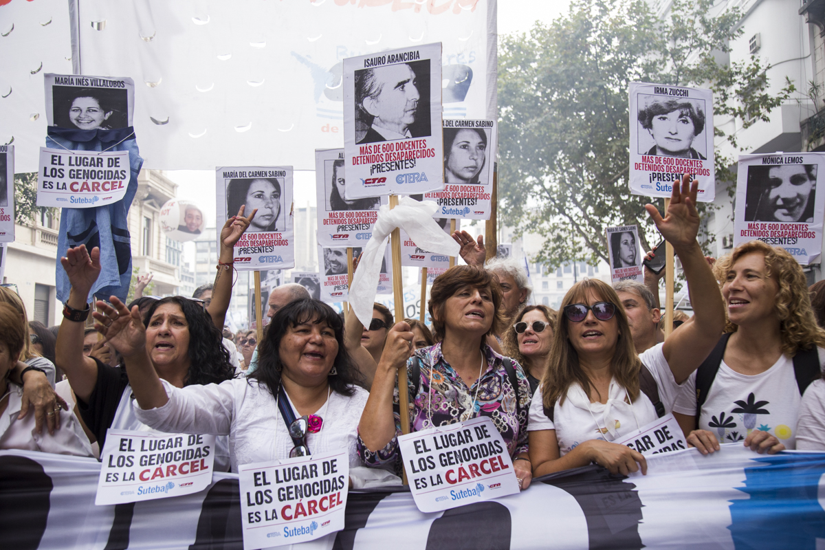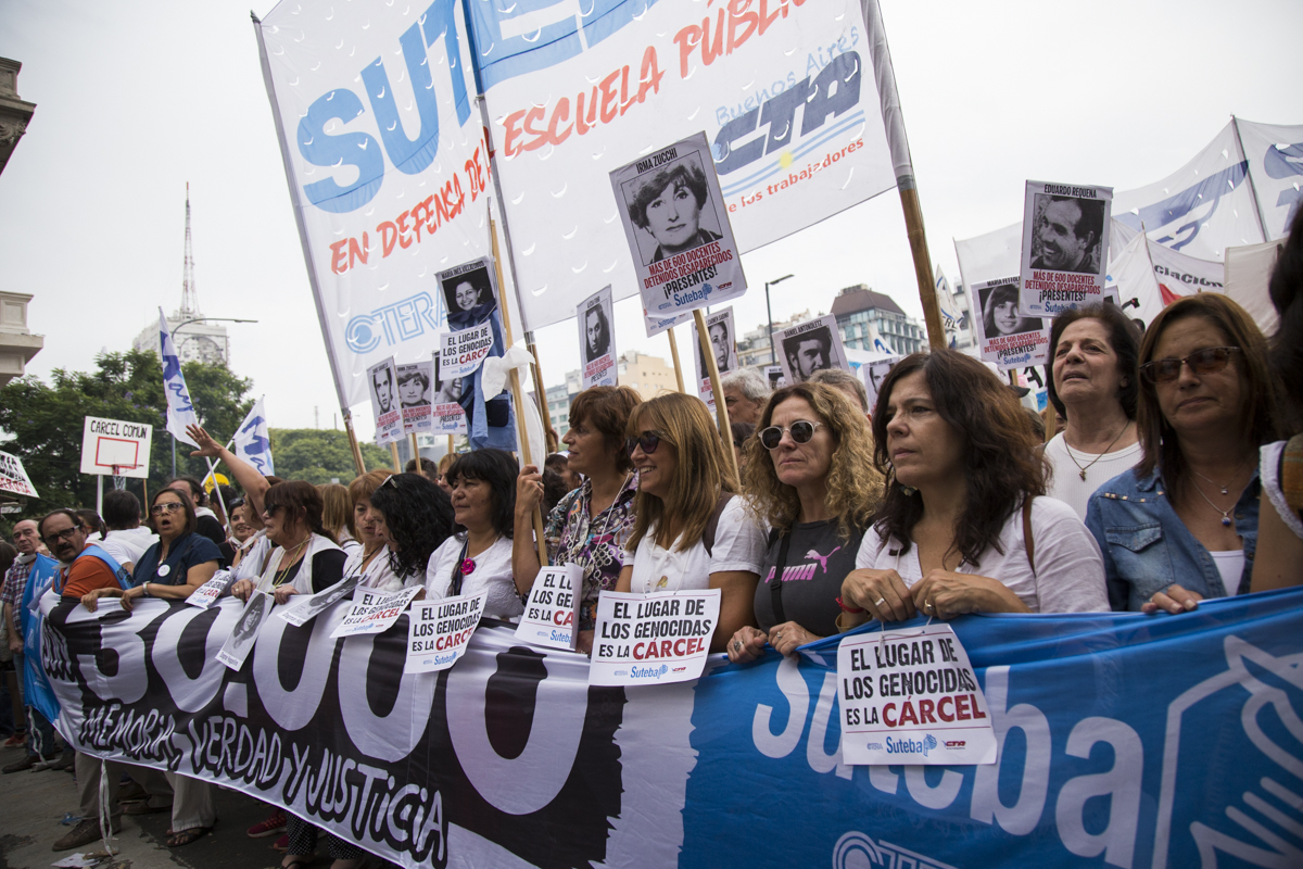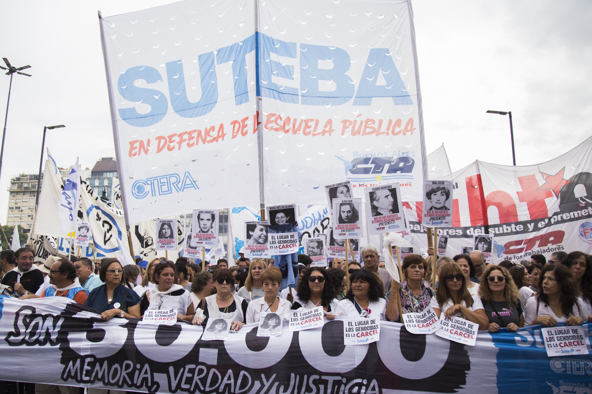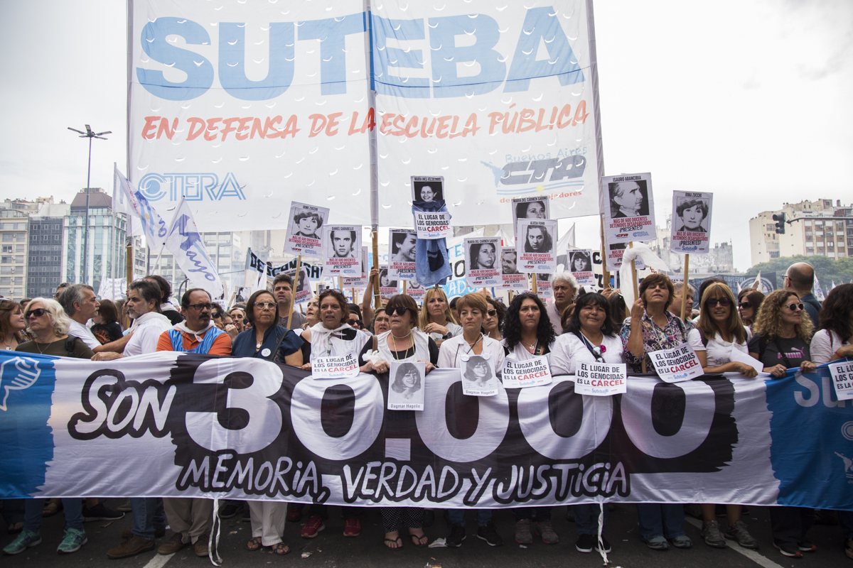 En esta nueva marcha, repudiamos el terrorismo de estado como lo hacemos cada día desde nuestras Escuelas con lxs estudiantes y levantamos con cada pañuelo la bandera de nuestrxs 30.000, reafirmando que EL ÚNICO LUGAR PARA UN GENOCIDA ES LA CÁRCEL.