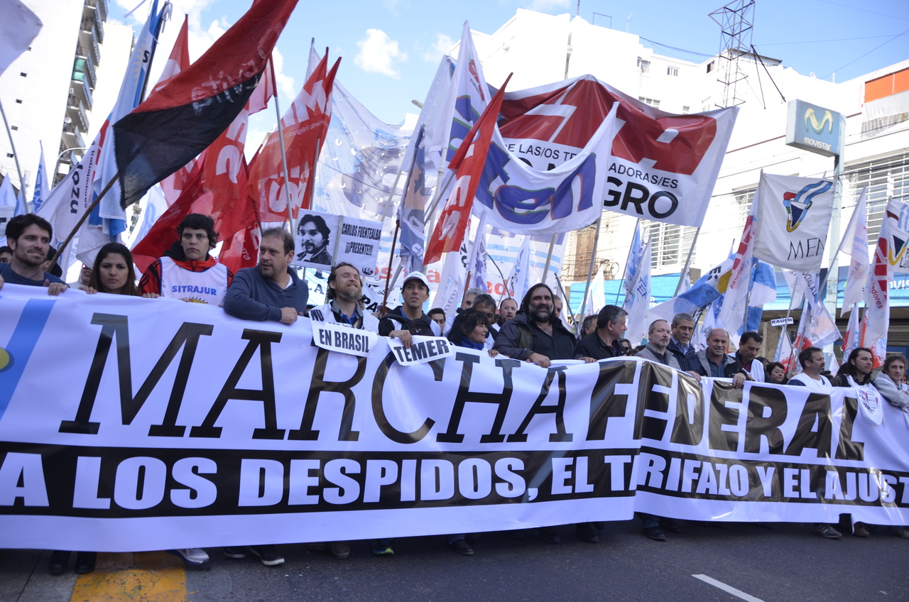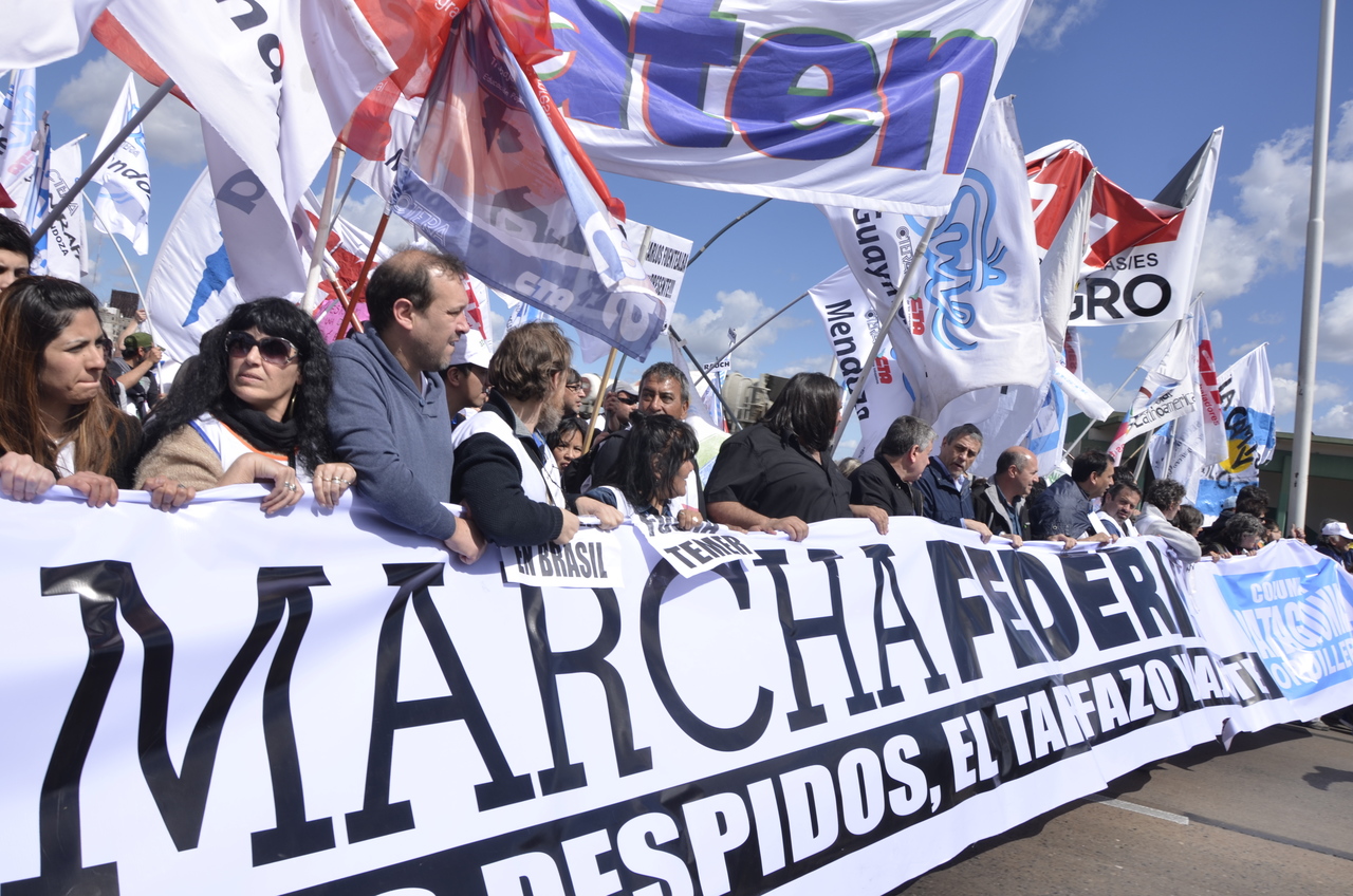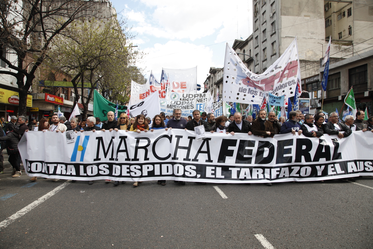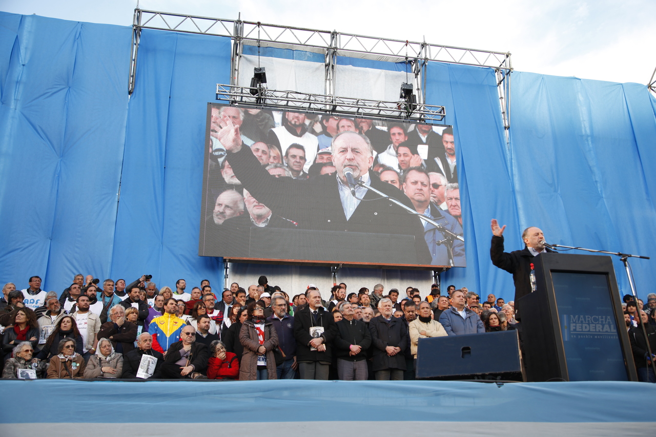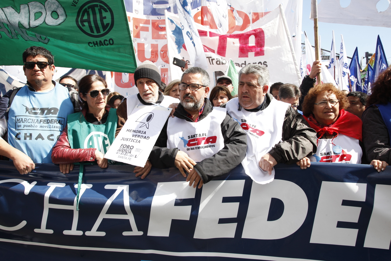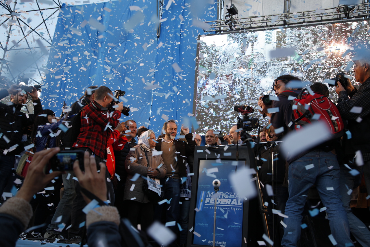 A su vez, Yasky remarcó las exigencias de la Marcha Federal: "Reclamamos apertura de paritarias con los docentes que dieron el ejemplo con un masivo paro, aumento de emergencia para jubilados, le exigimos al Gobierno que se declare la emergencia social en el país para proteger el empleo y las pymes y reactivar el mercado interno. No queremos que nos sigan imponiendo planes de ajuste y no queremos ir a un escenario de reformas laborales, como tampoco la entrega de la Nación que se pretende hacer a espaldas del pueblo".