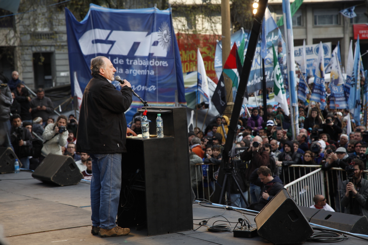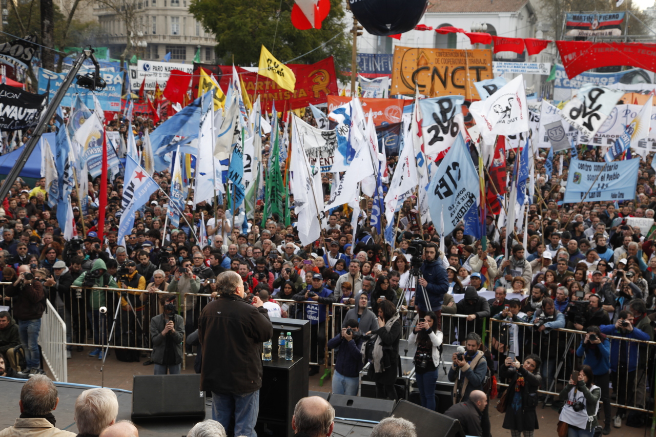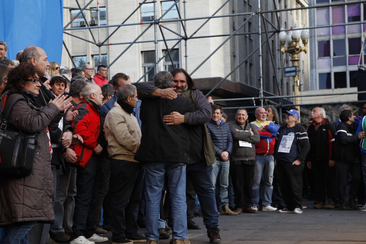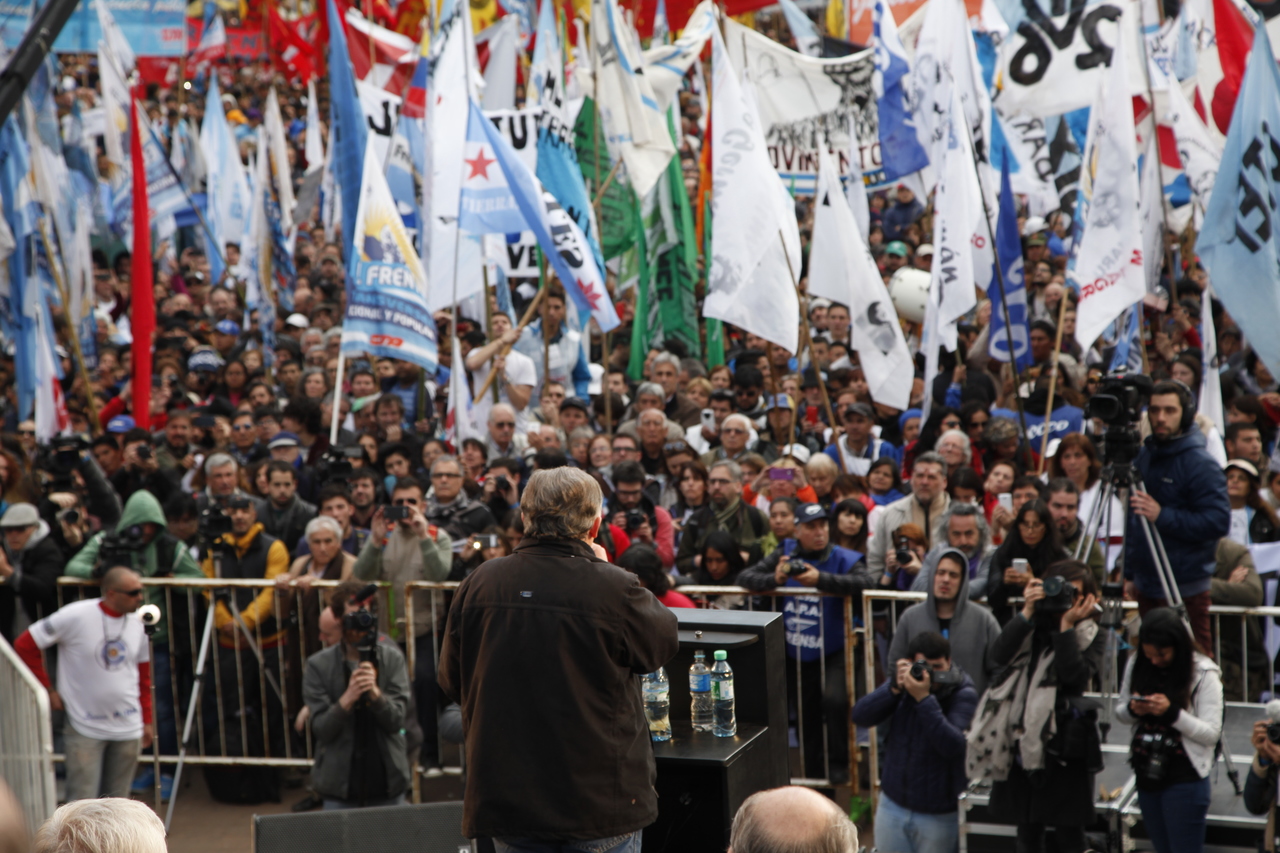 Por su parte, Yasky resaltó: "A veces la historia nos pone en el día, en el lugar, en la hora y en el momento en el que, casi sin darnos cuenta, somos protagonistas de una nueva era para nuestro país. Hay que ser conscientes de que hoy frenamos el ajuste porque este pueblo no se pone de rodillas. Este pueblo está de pie y seguirá marchando. ''