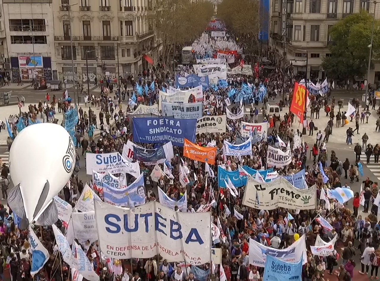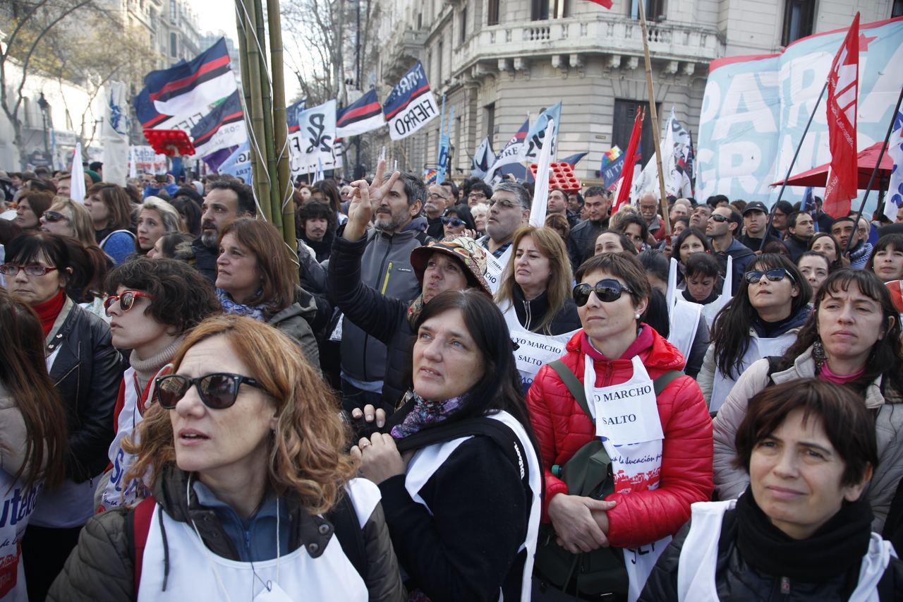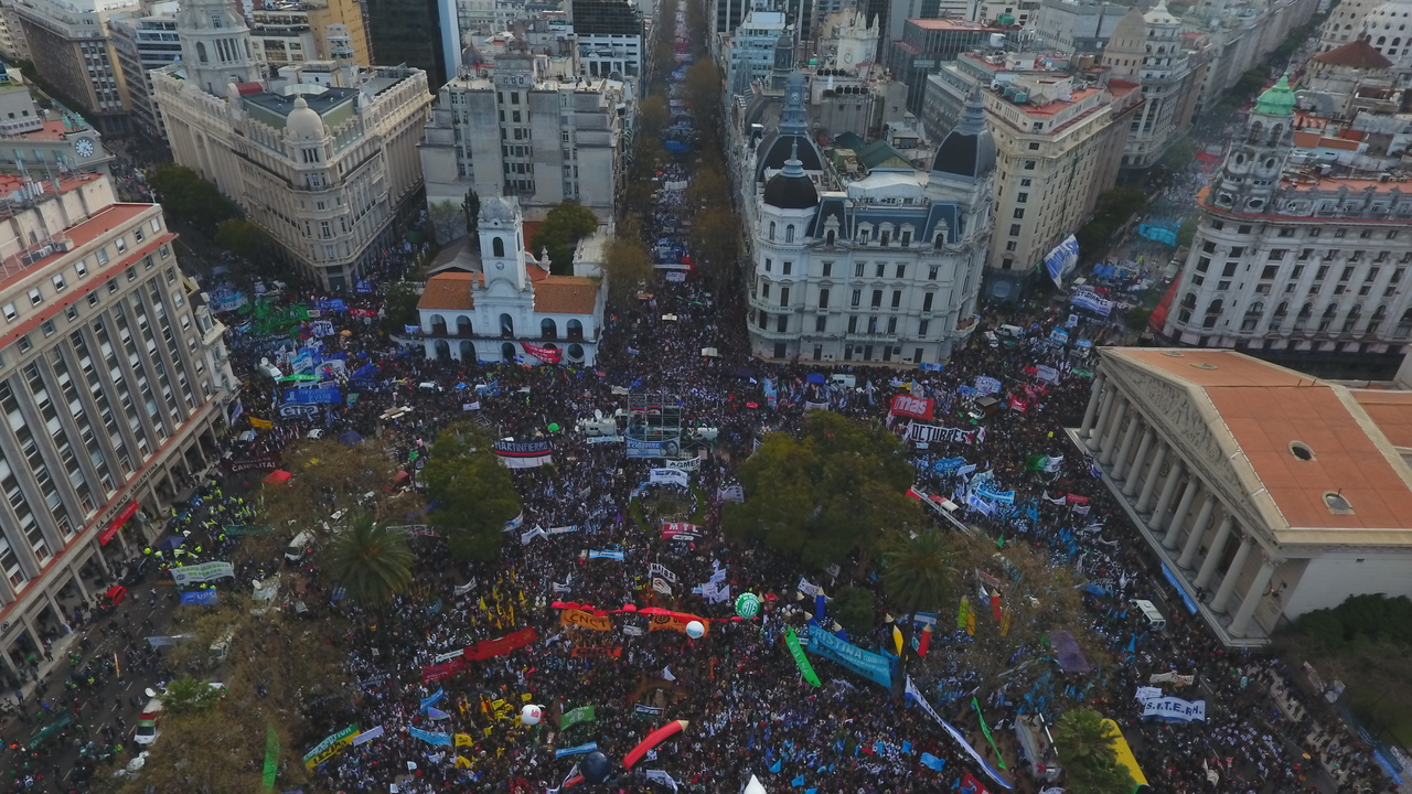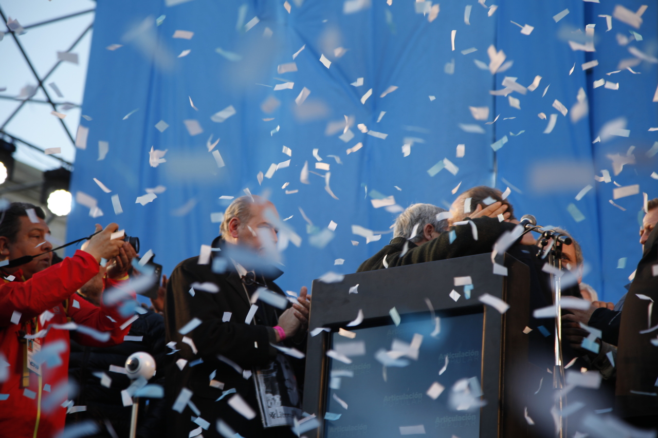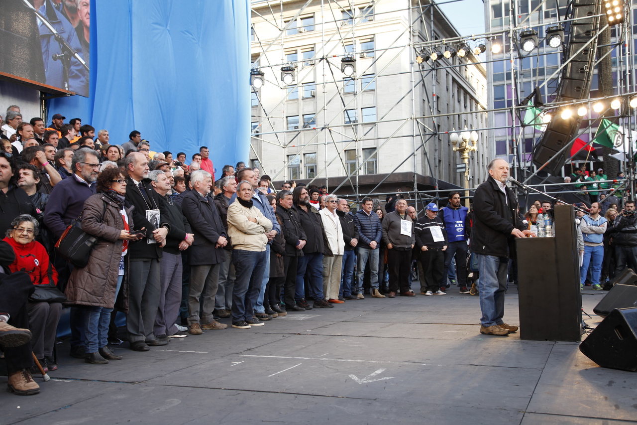 Por su parte, Yasky resaltó: "A veces la historia nos pone en el día, en el lugar, en la hora y en el momento en el que, casi sin darnos cuenta, somos protagonistas de una nueva era para nuestro país. Hay que ser conscientes de que hoy frenamos el ajuste porque este pueblo no se pone de rodillas. Este pueblo está de pie y seguirá marchando. ''