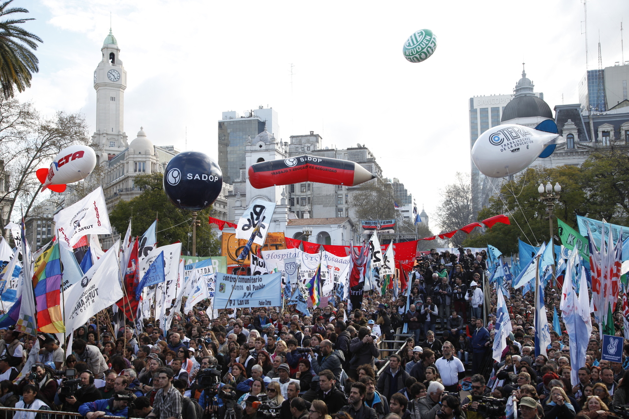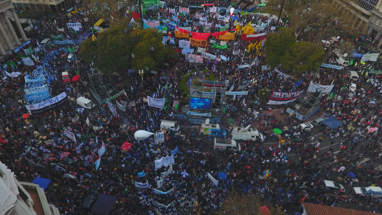 Tres columnas entraron a la Plaza: una por Diagonal Sur, otra por Diagonal Norte y otra por Avenida de Mayo. En horas de la tarde se realizó el gran acto de cierre de esta icónica lucha.