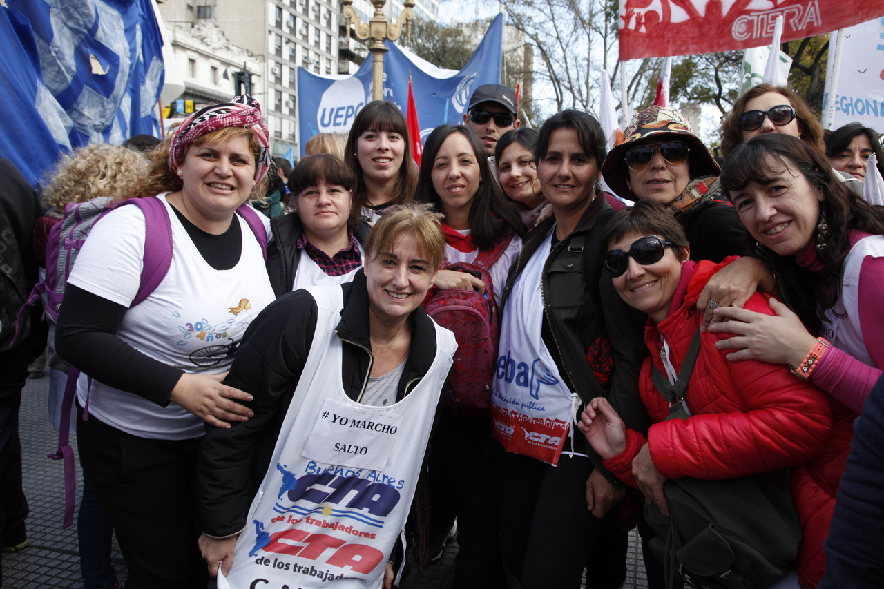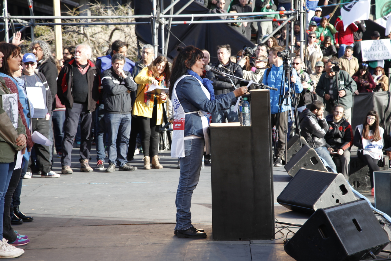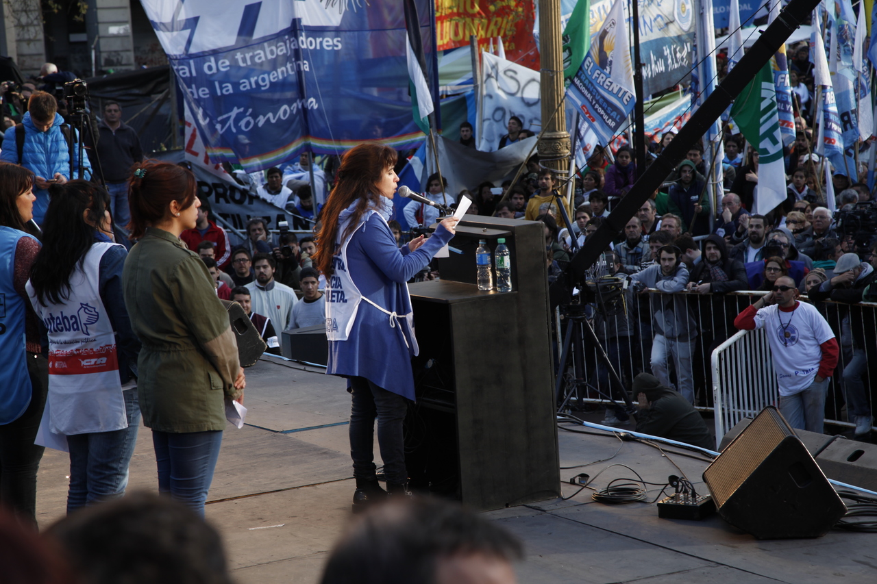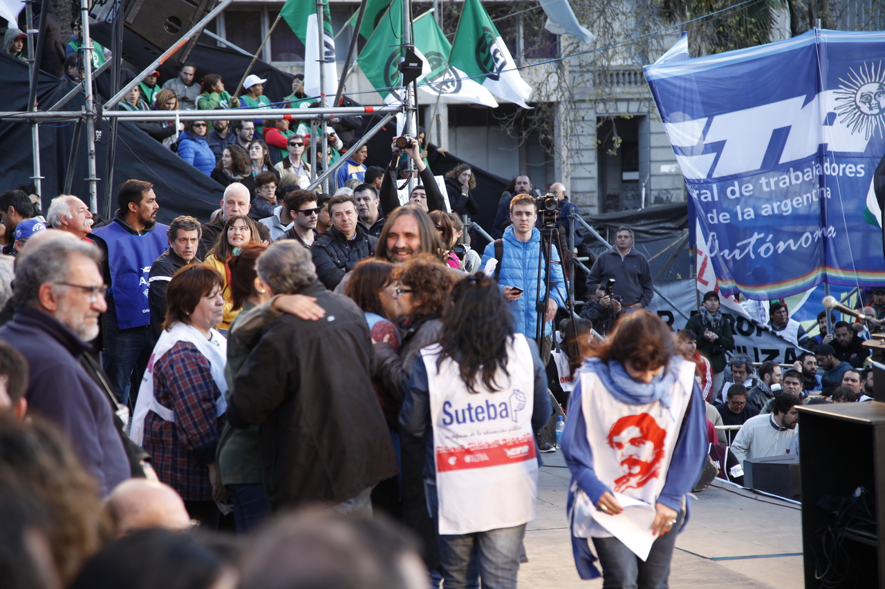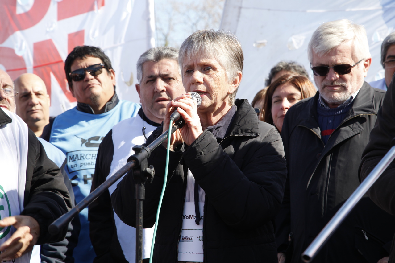 También estuvo presente Sonia Alesso, Secretaria General de CTERA, quien expresó sobre esta imponente marcha: "Estuvimos en la columna del NEA con los compañeros de Formosa, Misiones, Corrientes, Chaco, Entre Ríos y Santa Fe. En Santa Fe tuvimos un acto con 10 mil personas y otro en Rosario con 15 mil. Esto expresa la unidad del movimiento obrero y la necesidad de generar la unidad necesaria del pueblo para pelear contra el ajuste. Estamos muy emocionados porque evocábamos a Mary Sánchez y a Stella Maldonado y creemos que estamos cumpliendo con lo que hubiesen querido, como Carlos Fuentealba, peleando por este presente y por un futuro que no sea de miseria y hambre. Esta marcha nos llena de orgullo a todos y también es conmovedora, con una gran pluralidad de gremios que acompañan a la CTA, como también a un hombre como Yasky que desde enero está diciendo la importancia de construir la unidad en la lucha para torcer el rumbo de las políticas de derecha".