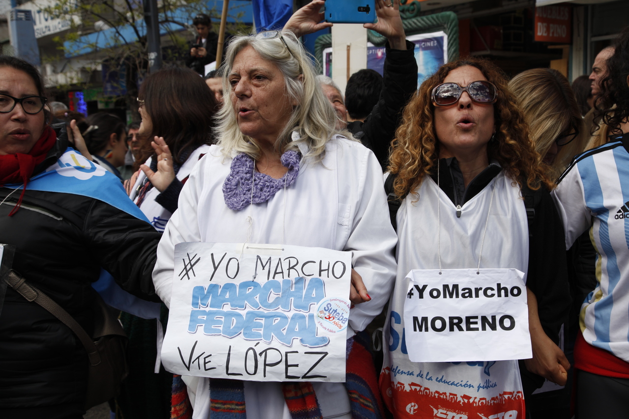 Las columnas SUR ESTE, SUR OESTE y CUYO se agruparon en la Plaza Alsina de Avellaneda, donde realizaron un acto por la mañana. El Secretario General del SUTEBA, Roberto Baradel, tomó la palabra y compartió emocionado: "Esto es histórico, es un orgullo pertenecer a una organización como la CTA. Es un orgullo protagonizar, como en el '94, una nueva Marcha Federal contra el neoliberalismo. Son impresionantes las columnas que vinieron del Sur, como las demás que vienen de todas las provincias. La Plaza de Mayo no nos alcanza para reunir a todos los compañeros de todo el país, demostramos que hay un pueblo con dignidad y con voluntad de lucha que sabe defender sus derechos".