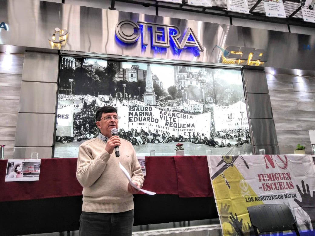 Al respecto, Luis D’Andrea, Delegado Paritario y representante de la Secretaría de Salud del SUTEBA, compartió: "Desde el año pasado venimos trabajando desde CTERA, con varixs compañerxs de las diferentes provincias, para abordar la gravísima problemática que atraviesan las comunidades educativas de las zonas de nuestro país que padecen las fumigaciones con agrotóxicos. En la jornada nacional debatimos la producción y promovimos la ejecución de un ‘protocolo de actuación ante los casos de fumigación con agrotóxicos en las cercanías de las escuelas’".