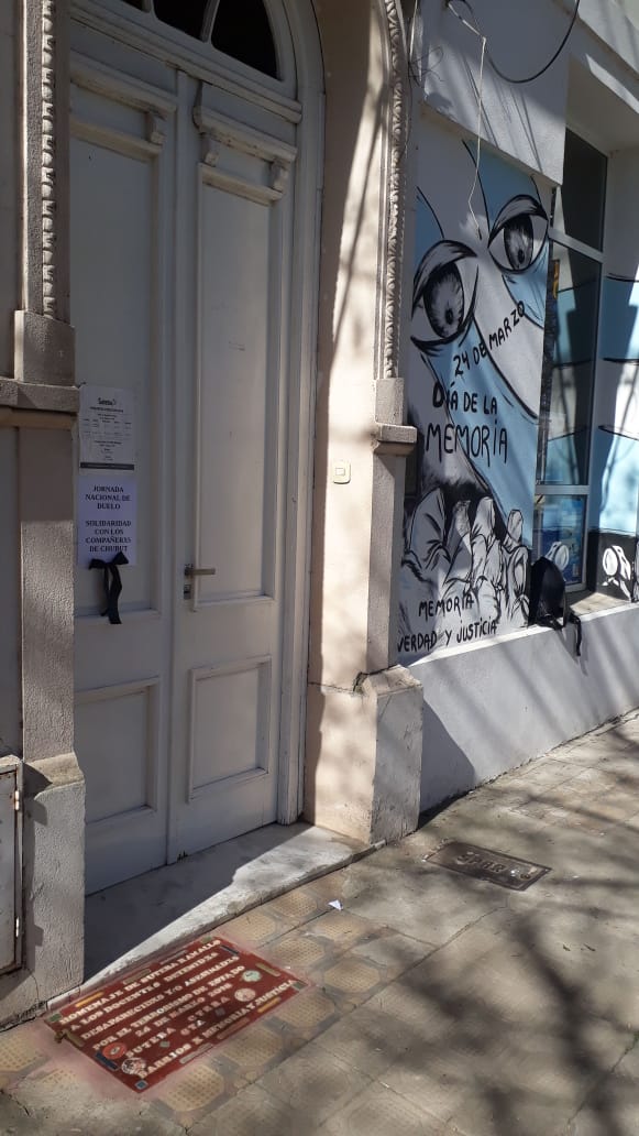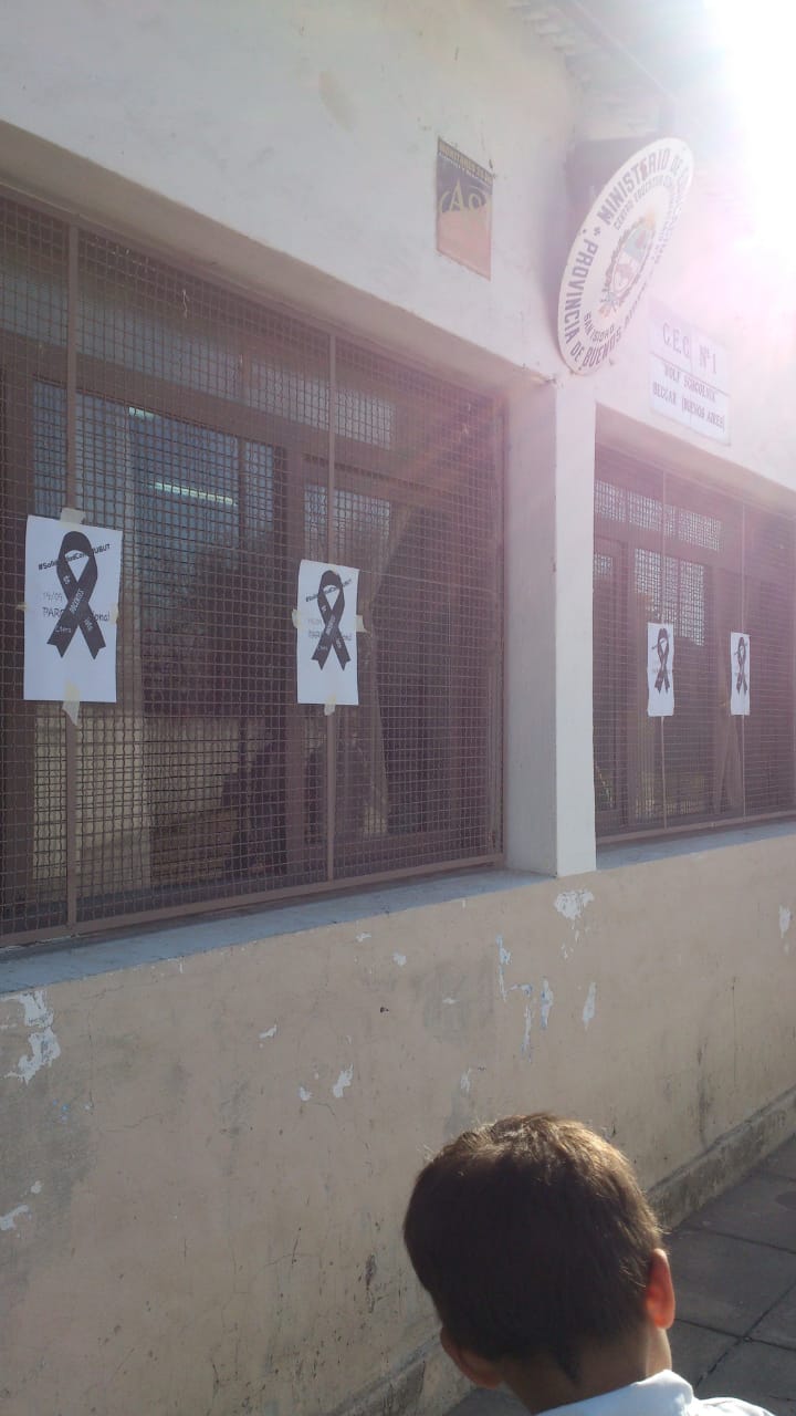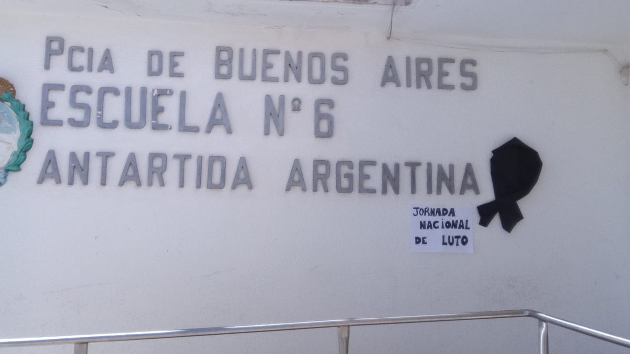 En la Jornada de duelo que tuvo lugar ayer, lxs Docentes y Estudiantes de todo el país expresaron sus muestras de apoyo y solidaridad con ATECh y con todxs lxs Docentes de la provincia de Chubut, exponiendo crespones y banderas a media asta en las Escuelas.
