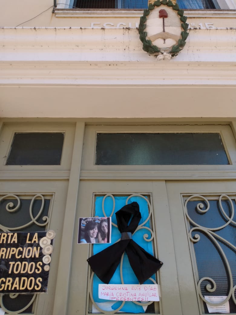 En la Jornada de duelo que tuvo lugar ayer, lxs Docentes y Estudiantes de todo el país expresaron sus muestras de apoyo y solidaridad con ATECh y con todxs lxs Docentes de la provincia de Chubut, exponiendo crespones y banderas a media asta en las Escuelas.