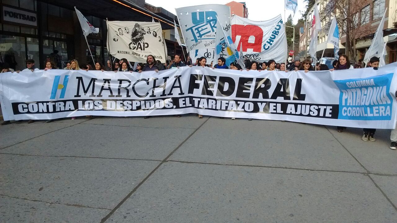 El Secretario General de SUTEBA, Roberto Baradel inició la Marcha Federal en Esquel y manifestó que "Acá no hay CTA de los Trabajadores, ni CTA Autónoma, acá estamos los compañeros de la CTA que hace 22 años construimos la primera Marcha Federal".
