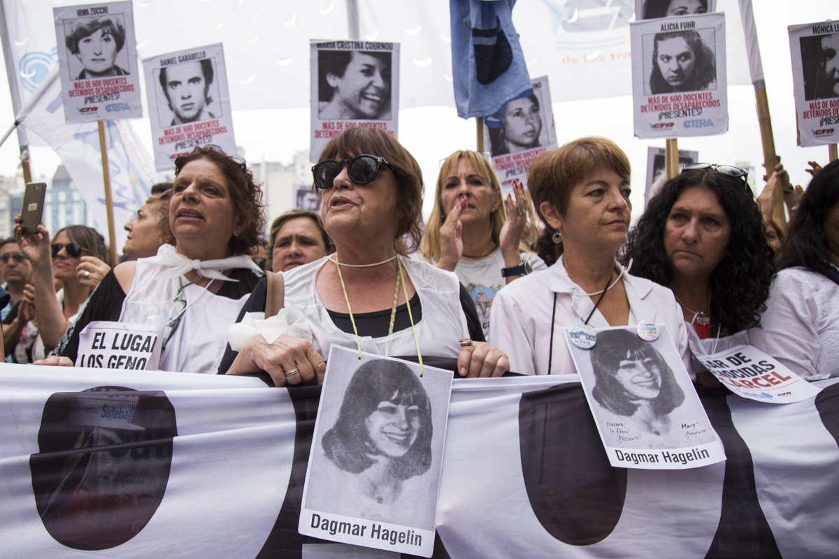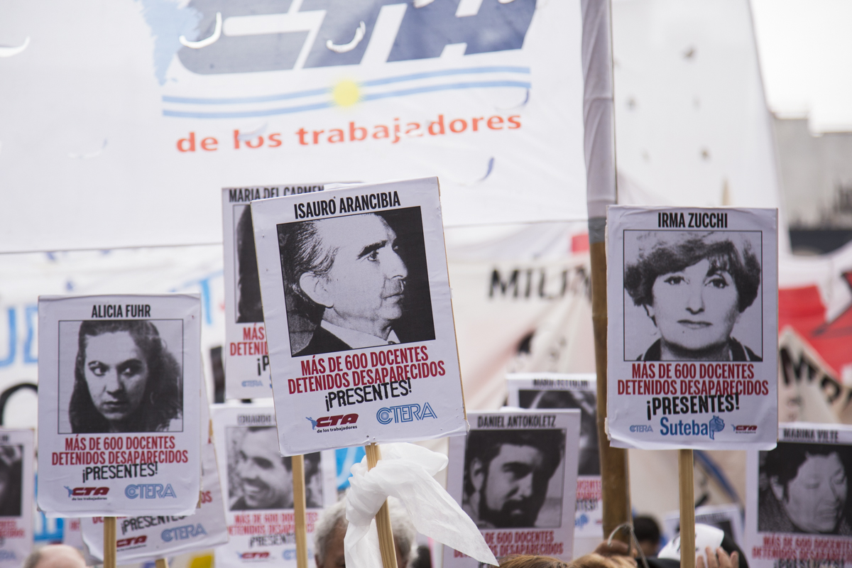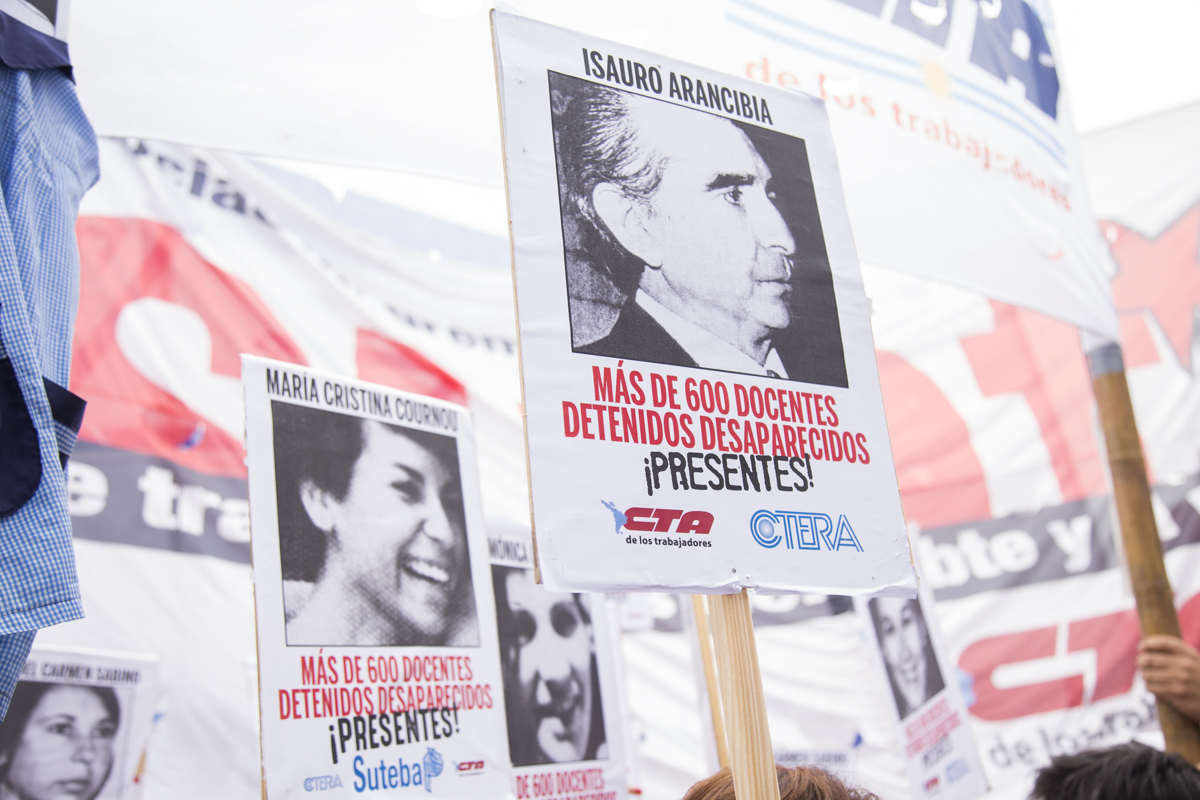 En esta nueva marcha, repudiamos el terrorismo de estado como lo hacemos cada día desde nuestras Escuelas con lxs estudiantes y levantamos con cada pañuelo la bandera de nuestrxs 30.000, reafirmando que EL ÚNICO LUGAR PARA UN GENOCIDA ES LA CÁRCEL.