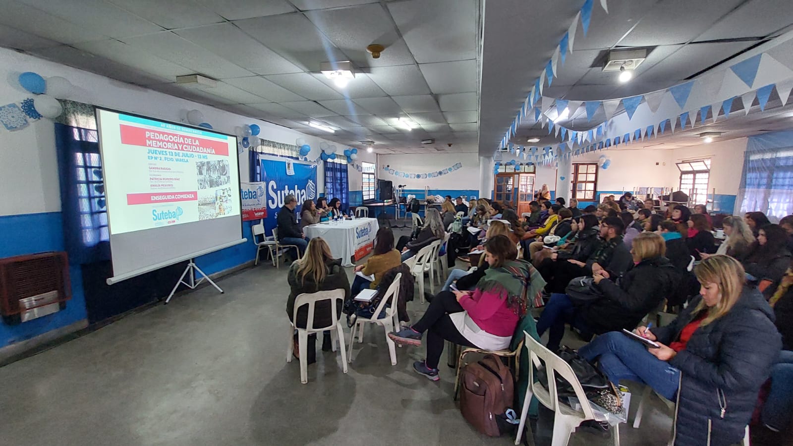 El jueves 13 de julio, en la sede del SUTEBA Florencio Varela, se llevó a cabo el primer encuentro del seminario "Pedagogía de la Memoria y Ciudadanía", desarrollado por la Secretaría de DDHH del SUTEBA Provincia, con una conferencia a cargo de Sandra Raggio, Historiadora, Socióloga, Docente e Investigadora de la UNLP, y Directora de la Comisión Provincial por la Memoria (CPM).
