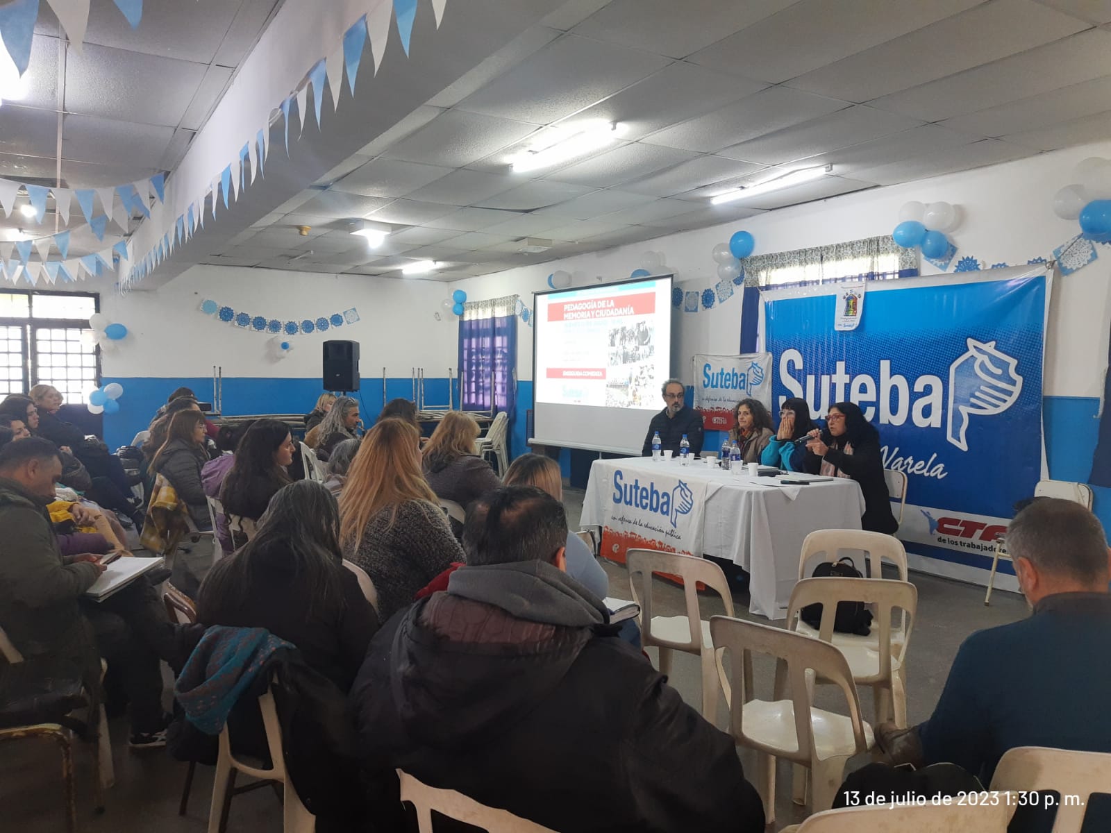 El jueves 13 de julio, en la sede del SUTEBA Florencio Varela, se llevó a cabo el primer encuentro del seminario "Pedagogía de la Memoria y Ciudadanía", desarrollado por la Secretaría de DDHH del SUTEBA Provincia, con una conferencia a cargo de Sandra Raggio, Historiadora, Socióloga, Docente e Investigadora de la UNLP, y Directora de la Comisión Provincial por la Memoria (CPM).