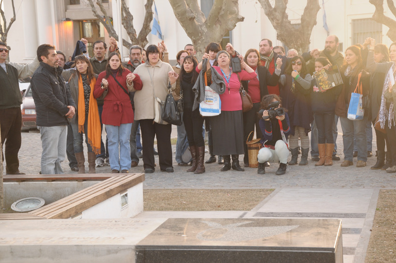 Después de ese emotivo momento lleno de lágrimas y aplausos, todos los presentes cruzaron a la Plaza principal (Plaza San Martín) y, delante del “Monumento a la Memoria”, cantaron el himno nacional. De esta forma tan particular terminó la décimo sexta jornada del SUTEBA.