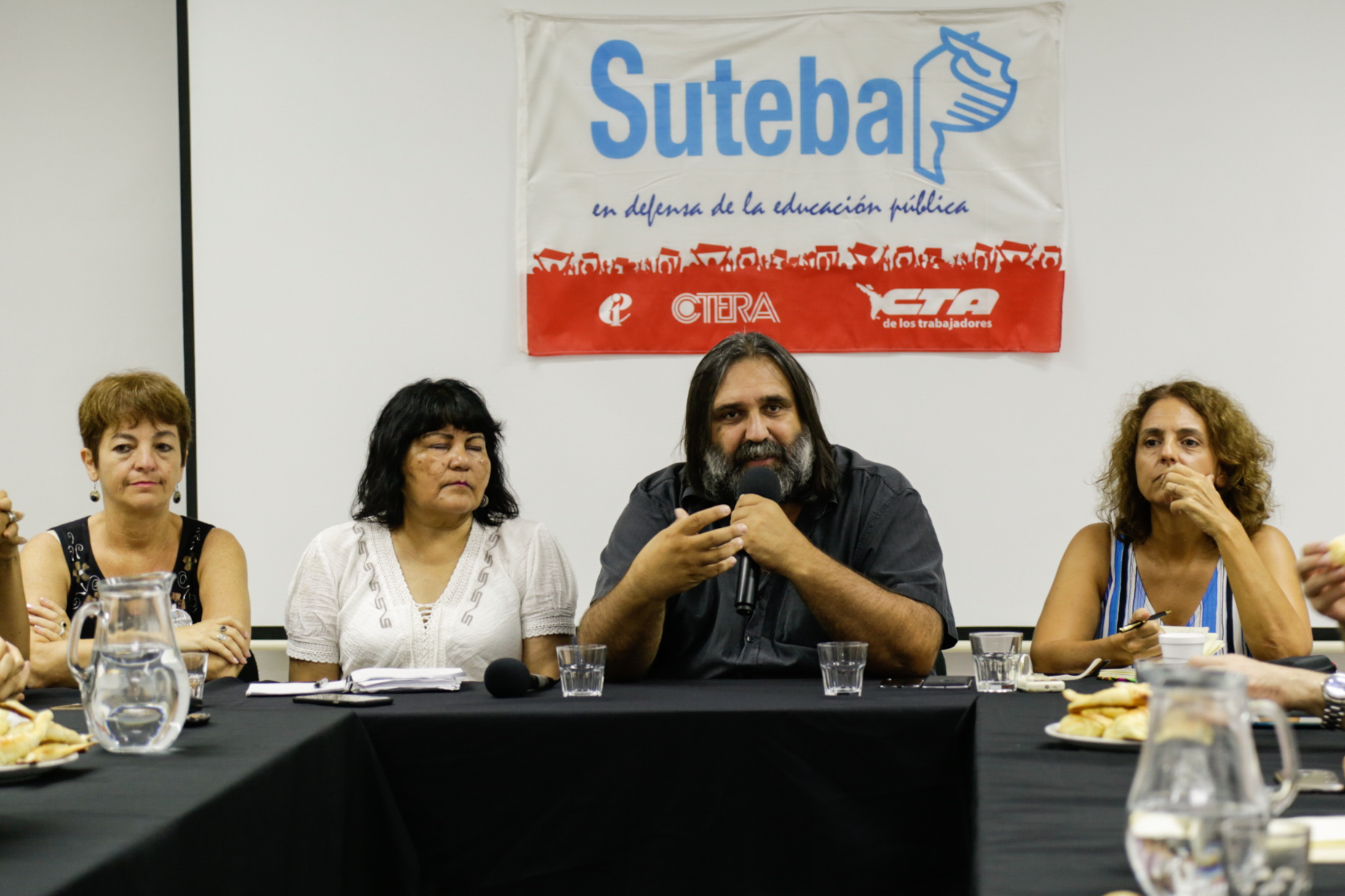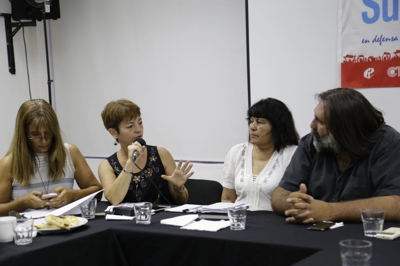 En representación del SUTEBA, participaron: Roberto Baradel; María Laura Torre y Silvia Almazán, Secretarias Generales Adjuntas; y Rosana Merlos y Fabiana Guerrero, Secretaria y Subsecretaria de Educación y Cultura.