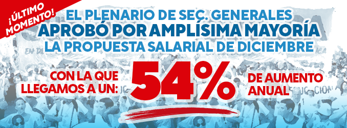 PLENARIO DE SECRETARIXS GENERALES: SE APROBÓ POR AMPLÍSIMA MAYORÍA LA PROPUESTA SALARIAL DEL 54% DE AUMENTO PROMEDIO