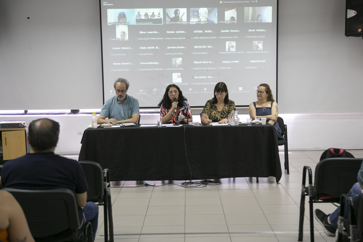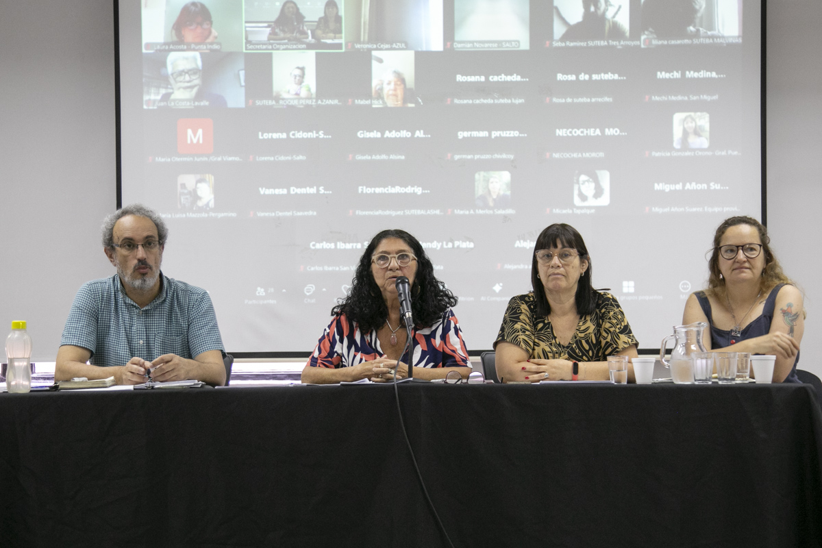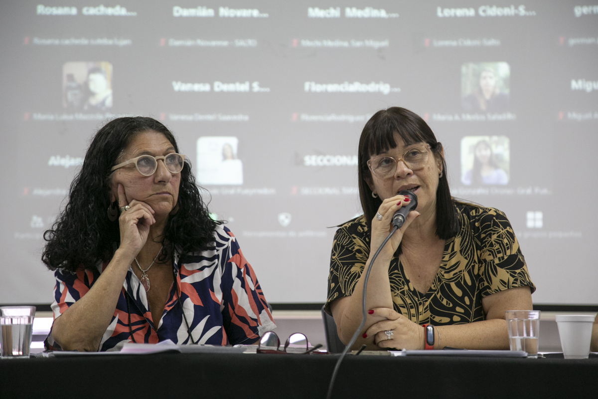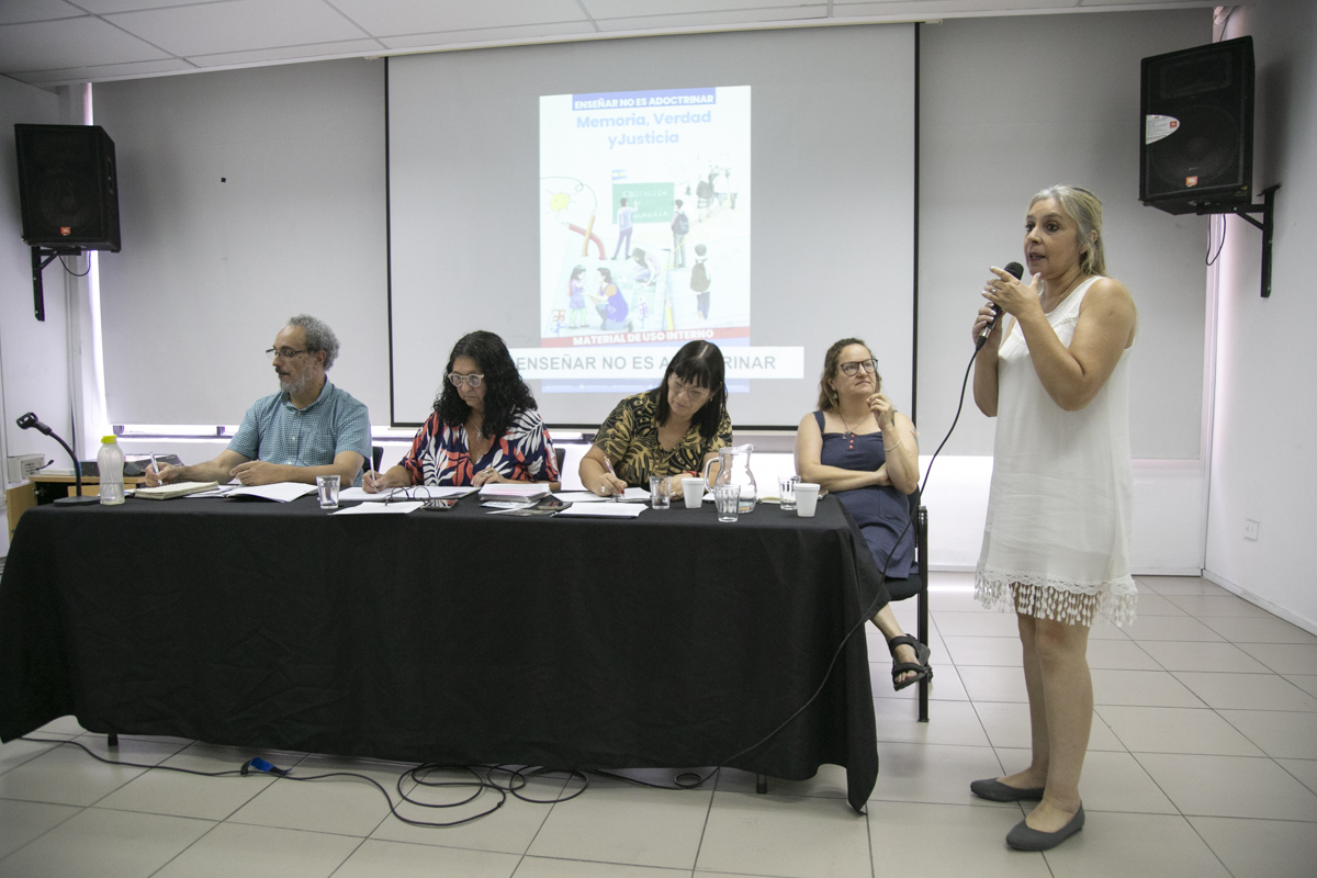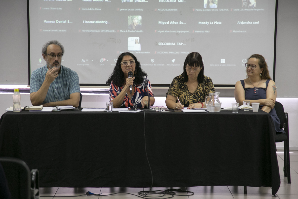 Con la presentación de diversos videos e imágenes de las acciones desplegadas en el año, desarrollaron el encuentro y la discusión en torno a los ejes de trabajo del 2024: Memoria, Verdad y Justicia; Conflictos en el Ámbito Escolar y Acuerdo Paritario de Resguardo y Reparación; Acciones de formación y capacitación; Niñeces; y Enseñar No es Adoctrinar.