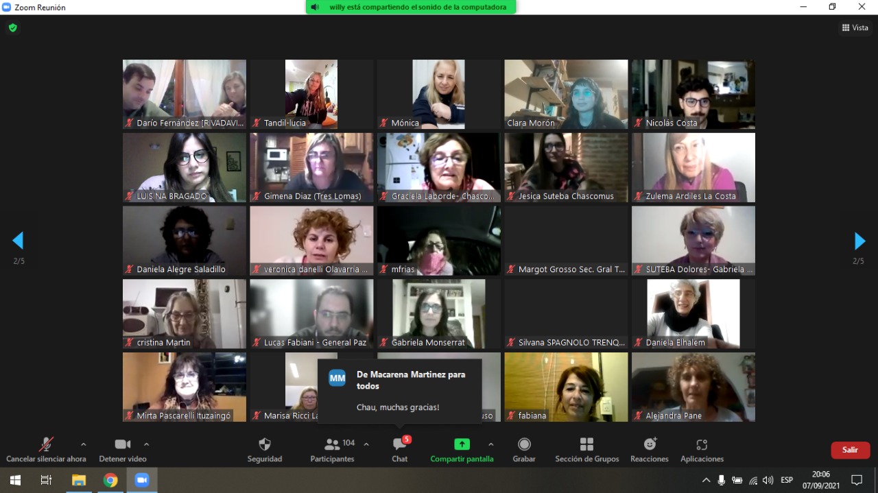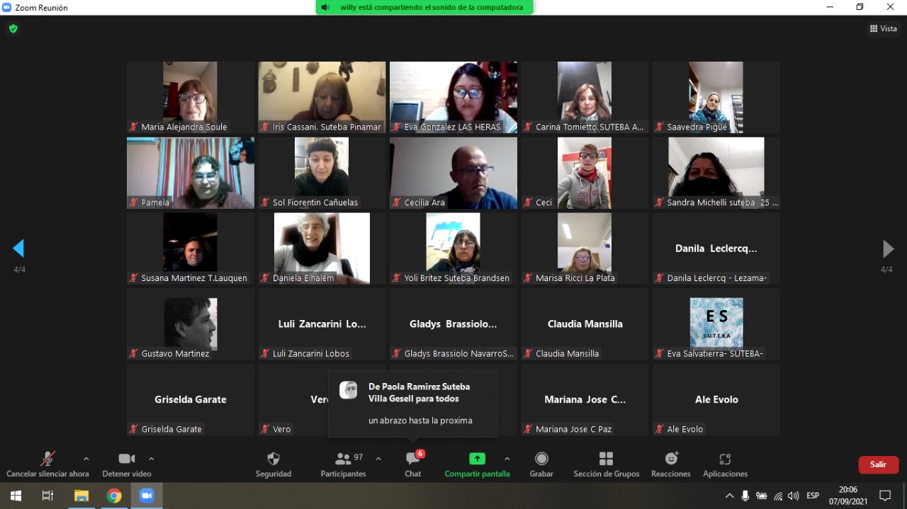 El martes 7 de septiembre, de manera virtual, se desarrolló el segundo Plenario del año de la Secretaría de Promoción Social y Turismo del SUTEBA.