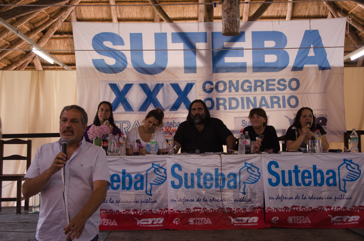 El Secretario General del SUTEBA, Roberto Baradel, compartió con los presentes: "Hace 30 años que compañeros entrañables comenzaban con el sueño de este Sindicato. Estamos muy orgullosos de que hoy tenga lugar el XXX Congreso Ordinario de nuestra agrupación, que es el símbolo más importante de nuestra democracia sindical. Con mucha emoción y tras la gran lucha que los compañeros dimos durante todo este año, llamamos desde la conducción Celeste a la unidad de todos los Trabajadores de la Educación bonaerenses para, así, construir la unidad nacional para derrotar al neoliberalismo".