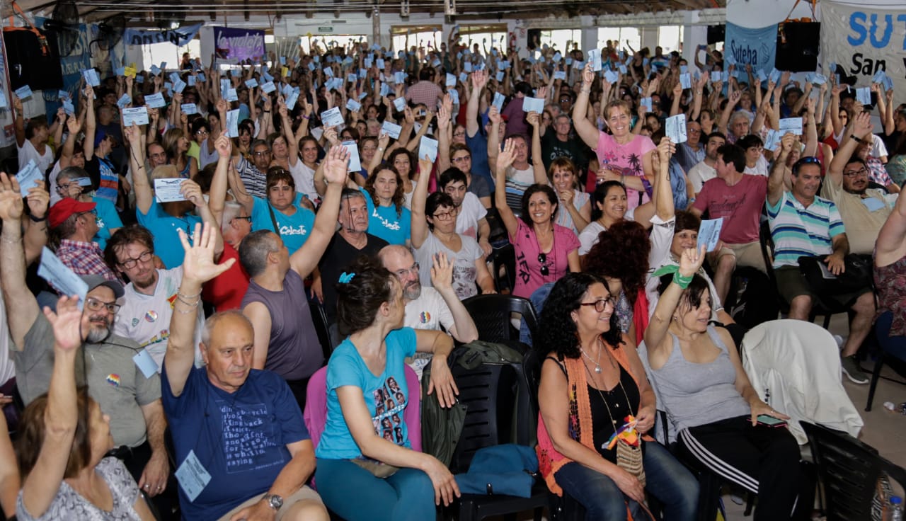 La decisión de lxs afiliadxs fue expresada por lxs Congresales, la cual había sido establecida en las Asambleas Ordinarias que se realizaron ayer en toda la Provincia. Se definió, por amplísima mayoría, aprobar la Memoria, el Balance y el Inventario del período 2018-2019, junto con la Política Gremial para el próximo período, propuesta por la conducción Celeste - Violeta.