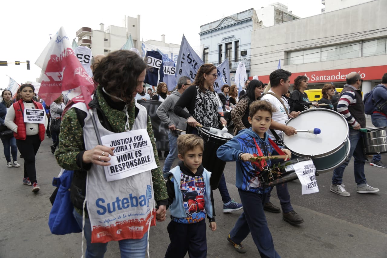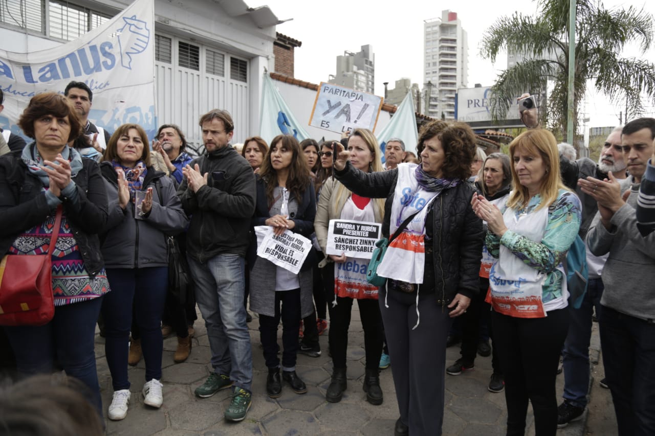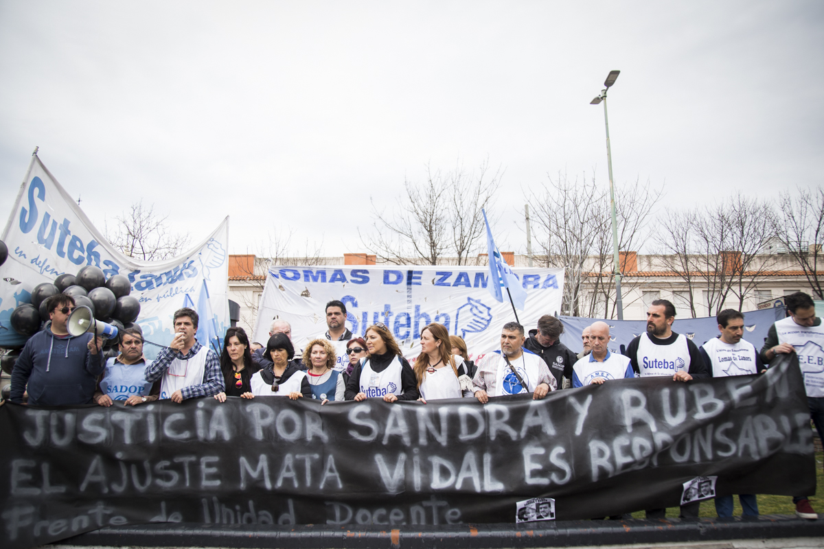 Con un acto inicial que tuvo lugar en la Plaza de Lomas y que contó con la presencia de cientxs de Docentes de los Sindicatos locales que conforman el FUDB, encabezadxs por lxs Secretarixs Generales distritales y acompañadxs por carteles con reclamos por justicia para Sandra y Rubén, además de denunciar los problemas en Escuelas de la región, se exigieron acciones urgentes para que se garanticen Escuelas seguras en toda la Provincia y por salarios dignos.