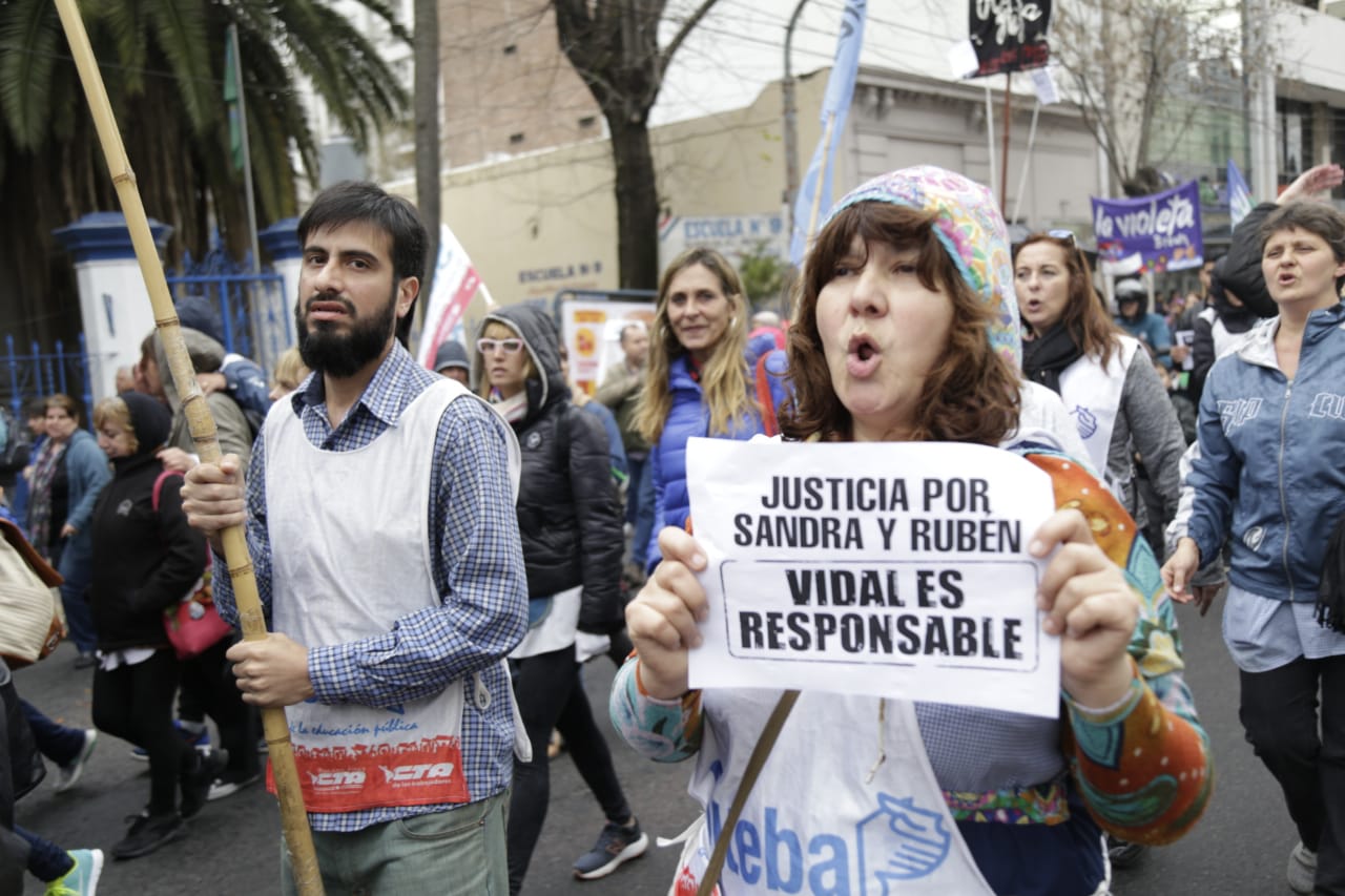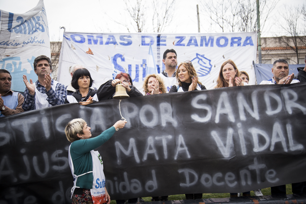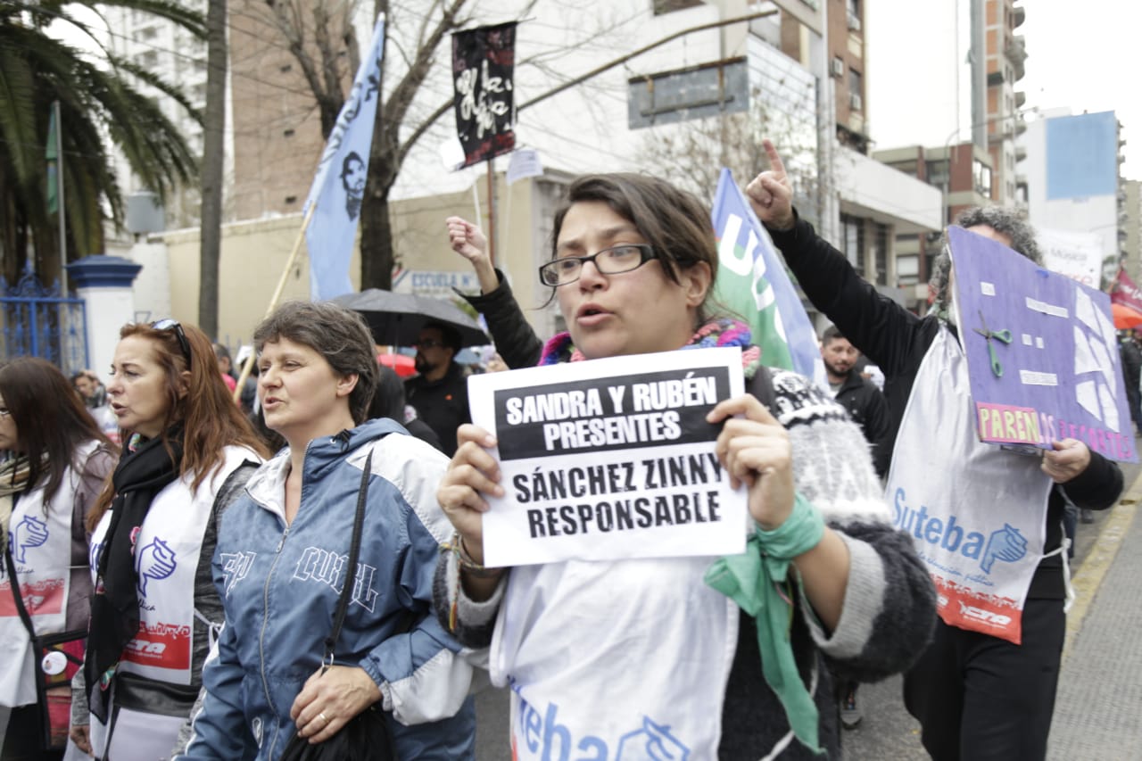 Con un acto inicial que tuvo lugar en la Plaza de Lomas y que contó con la presencia de cientxs de Docentes de los Sindicatos locales que conforman el FUDB, encabezadxs por lxs Secretarixs Generales distritales y acompañadxs por carteles con reclamos por justicia para Sandra y Rubén, además de denunciar los problemas en Escuelas de la región, se exigieron acciones urgentes para que se garanticen Escuelas seguras en toda la Provincia y por salarios dignos.