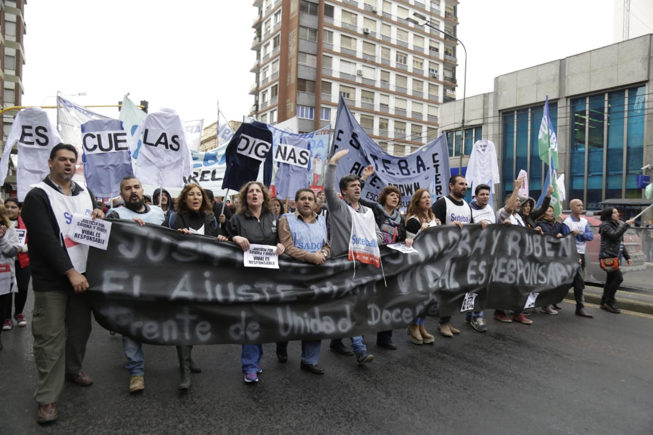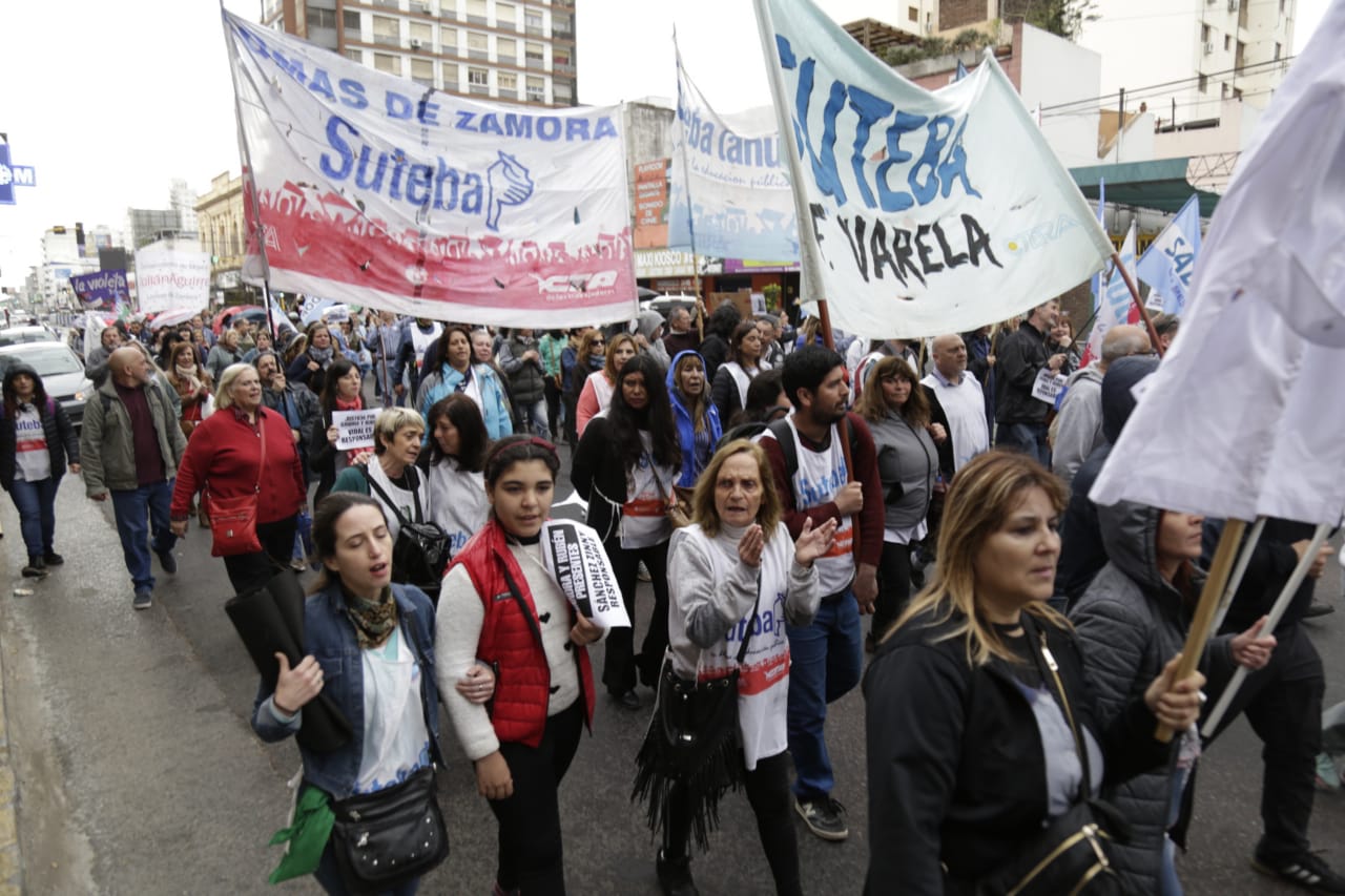 El miércoles 12, las Seccionales del SUTEBA pertenecientes a la zona sur del Conurbano: Lomas de Zamora, Lanús, Avellaneda, Esteban Echeverría - Ezeiza, Almirante Brown y Florencio Varela, se movilizaron en el marco del primer día del Paro Provincial convocado por el FUDB, desde la Plaza Grigera de Lomas hasta la Regional Lomas de Zamora del IOMA, para denunciar el grave estado de la Educación a nivel provincial.