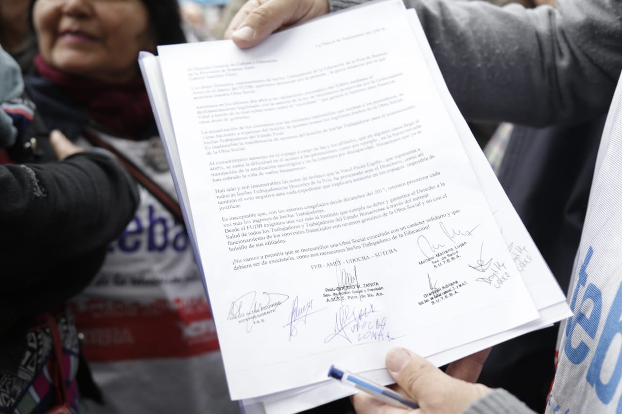 Al respecto, Silvia Almazán, Secretaria General Adjunta del SUTEBA, sostuvo: "Denunciamos las situaciones durísimas que atraviesan lxs Docentes de la región, en la que se vulnera el Derecho a la Salud. Es responsabilidad de esta delegación la de resolver el circuito administrativo y las garantías del acceso a todas las prestaciones, pero, fundamentalmente, plantearle al Directorio del IOMA y al Gobierno Provincial que no vamos a aceptar que el ajuste signifique la pérdida al acceso al derecho a la salud de lxs Docentes y que trasladen el aumento de las prestaciones sobre un salario que está congelado a diciembre del 2017".