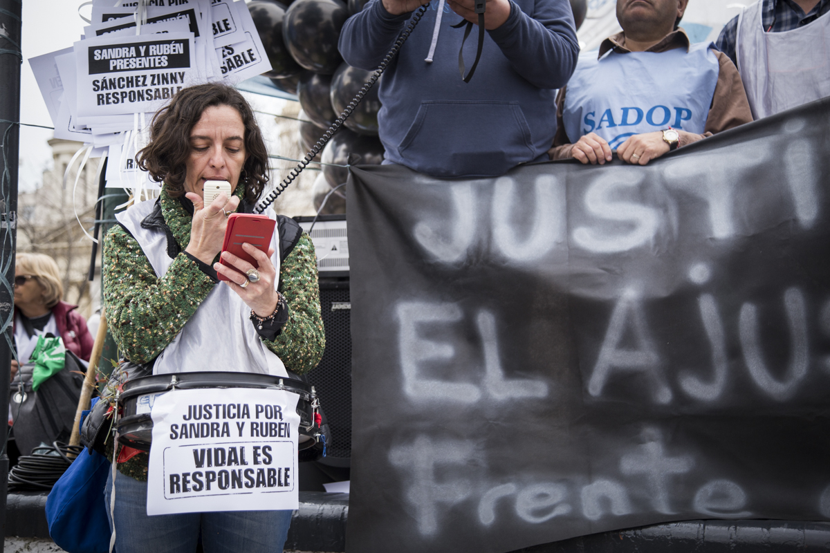 Al término del encuentro, se recordó a Gabriela Ciufarella, Docente que falleció principio de año producto de la demora del IOMA en brindarle los medicamentos para llevar adelante su tratamiento oncológico. A su vez, se exigió justicia también por Sandra y Rubén.