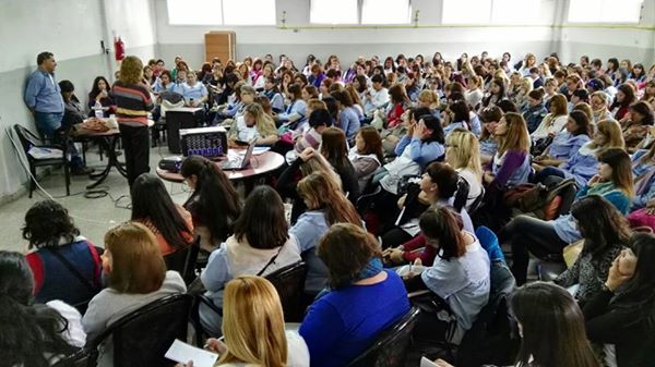 El viernes 21 se realizó en el Club Los Indios de Moreno, en el marco del proyecto "Alfabetización Inicial. Trabajo colaborativo y producción del Conocimiento", la Jornada "Leer y escribir en Alfabetización Inicial" que impulsa la Secretaría de Educación y Cultura del SUTEBA.