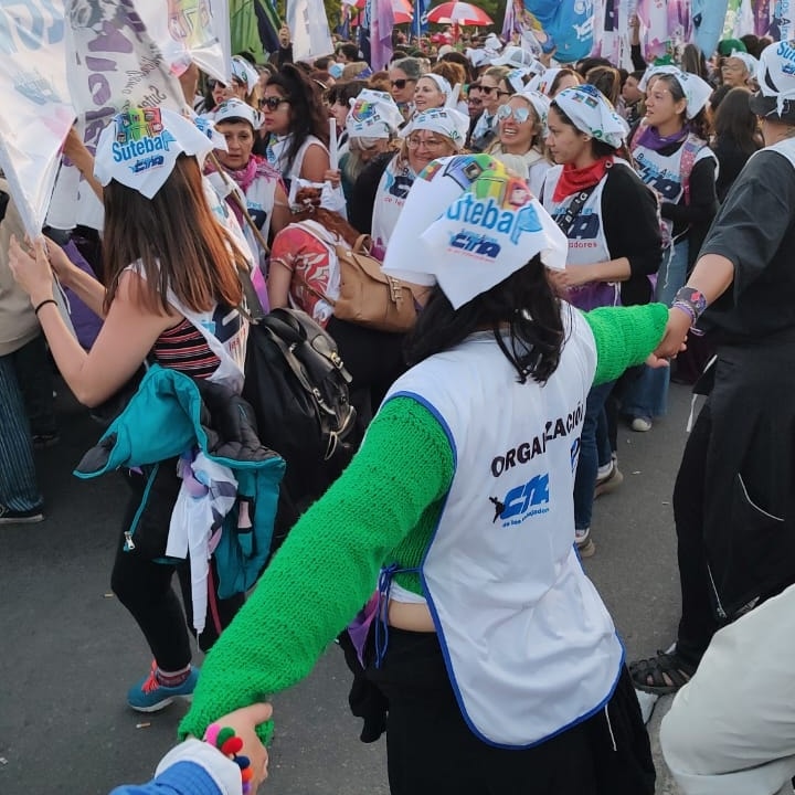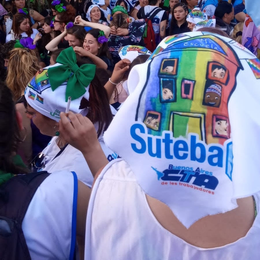 El domingo 9 de octubre, en el 35º Encuentro Plurinacional de mujeres, lesbianas, trans, travestis, bisexuales, intersexuales y no binaries; marchamos con pañuelos en la cabeza porque en la cosmovisión mapuche significa "protección".