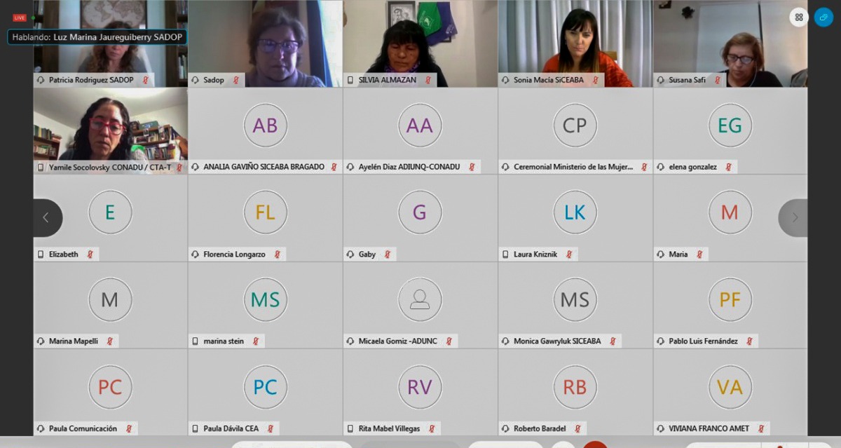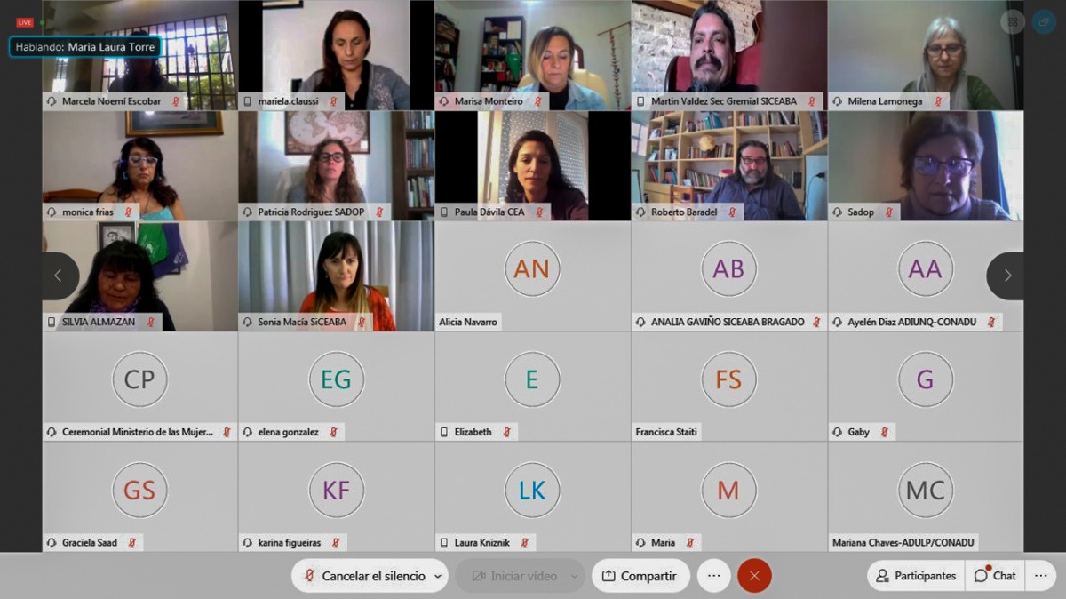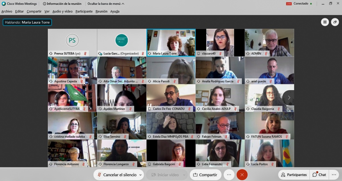 Por las demás Organizaciones, participaron y tomaron la palabra: Marina Jaureguiberry, Secretaria Gremial de SADOP; Viviana Franco, Secretaria de la Mujer de AMET; Sonia Macia, Secretaria de Actas de SICEABA; Susana Ramos, Subsecretaria de Acción Gremial de FATUN; Claudia Baigorria, Secretaria Adjunta de la CONADU HISTÓRICA; y Yamile Socolovsky, Secretaria de Relaciones Internacionales de CONADU.