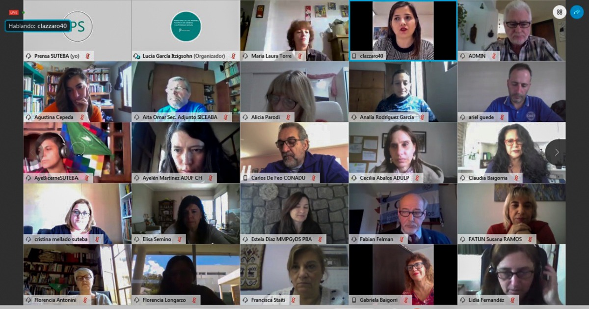 Dando la bienvenida en representación del Gobierno Provincial, la Subsecretaria de Políticas de Género y Diversidad Sexual, Lucía Portos, sostuvo: "Las diferencias de los géneros se producen y reproducen socialmente, por eso estamos llevando a cabo esta batalla con la participación sumamente necesaria de los Sindicatos Docentes. Esperamos también que esta relación vaya creciendo en líneas de acción conjuntas para llegar a todxs lxs bonaerenses desde una mirada de igualdad y ampliación de derechos".
