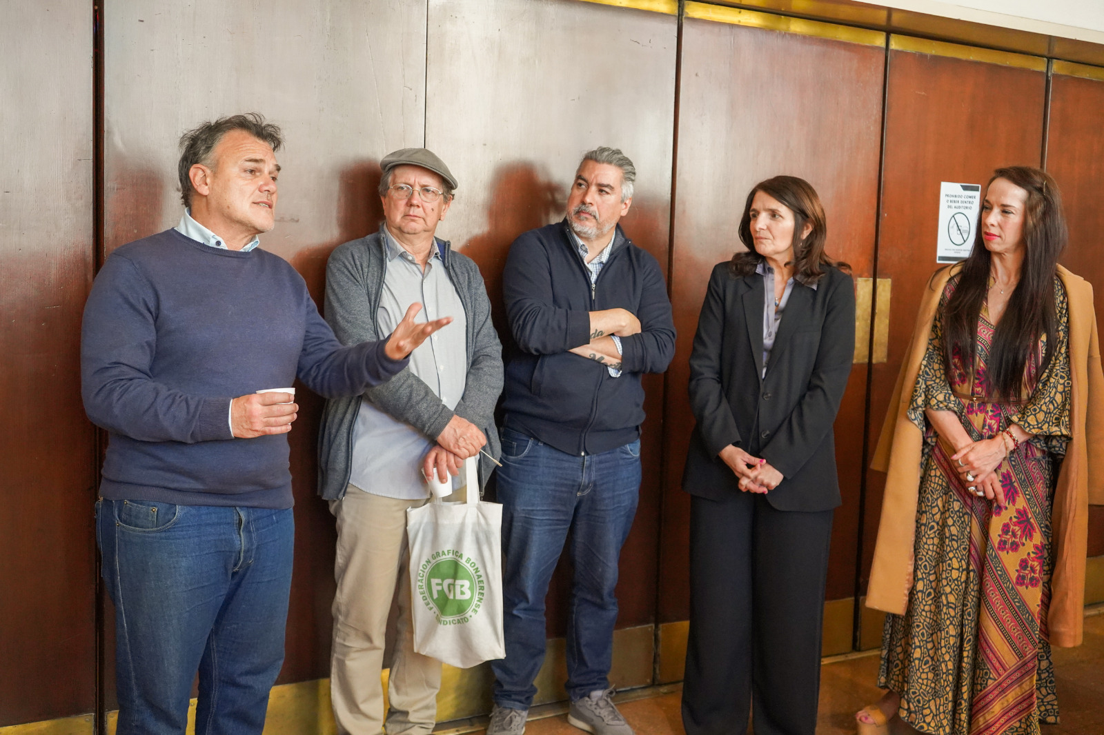 Estuvieron presentes autoridades del Instituto Cultural, artistas fileteadores, la curadora de la muestra, Ayelen Fagiani, y compañerxs de la Intersindical de Cultura RADAR.