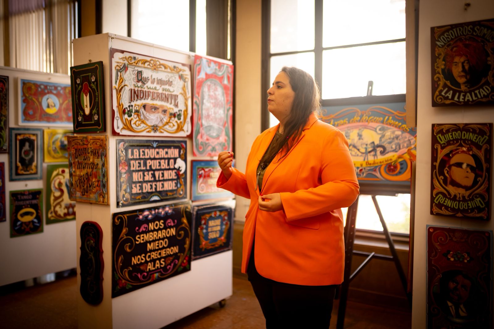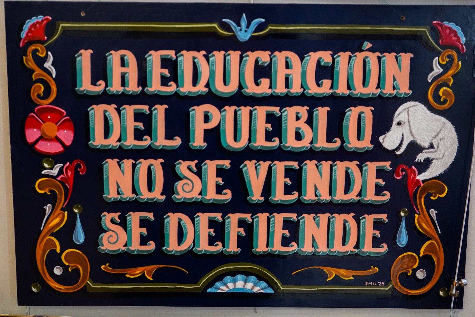 La muestra de la Asociación de Fileteadores fue censurada por el Gobierno Nacional por defender la Escuela Pública y denunciar el genocidio en Gaza.