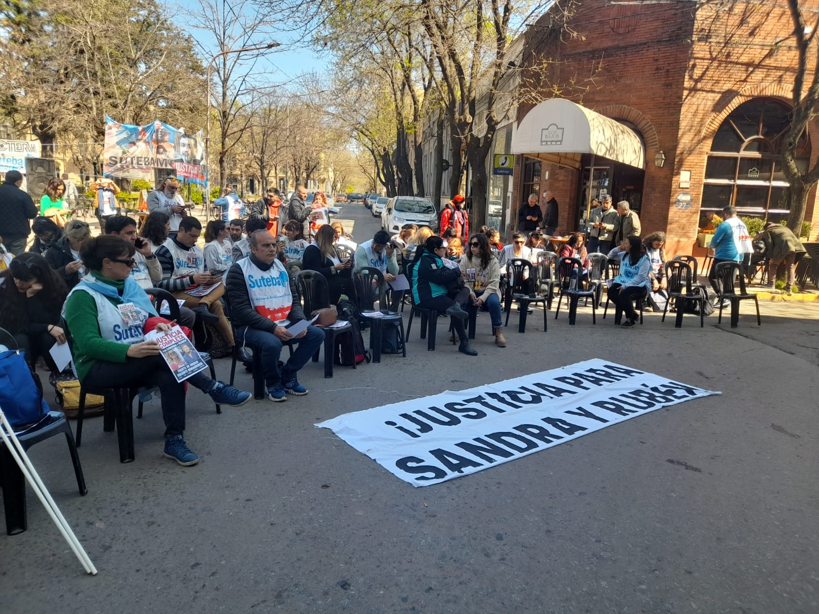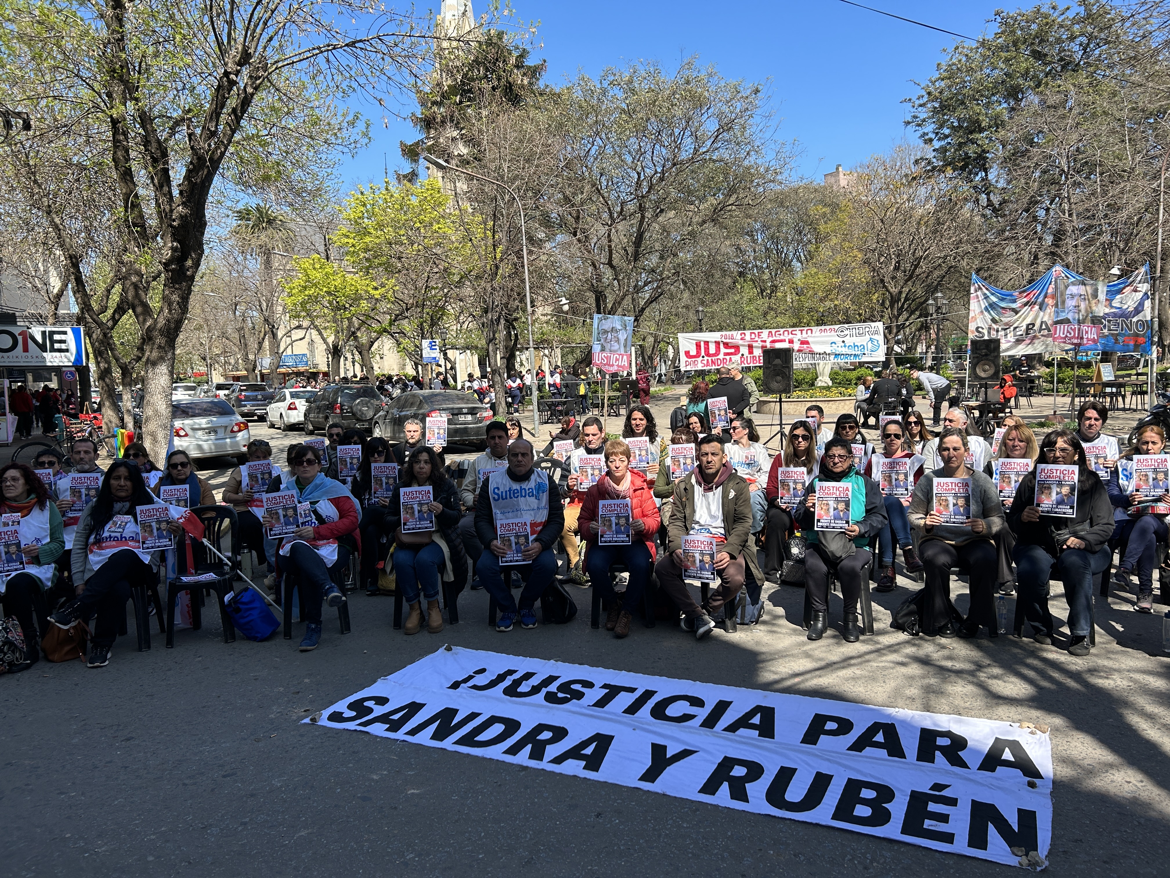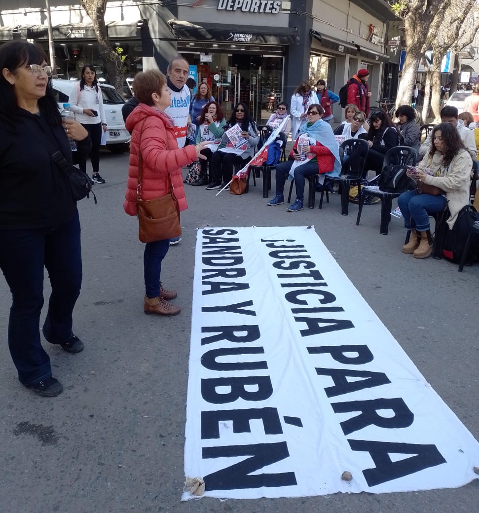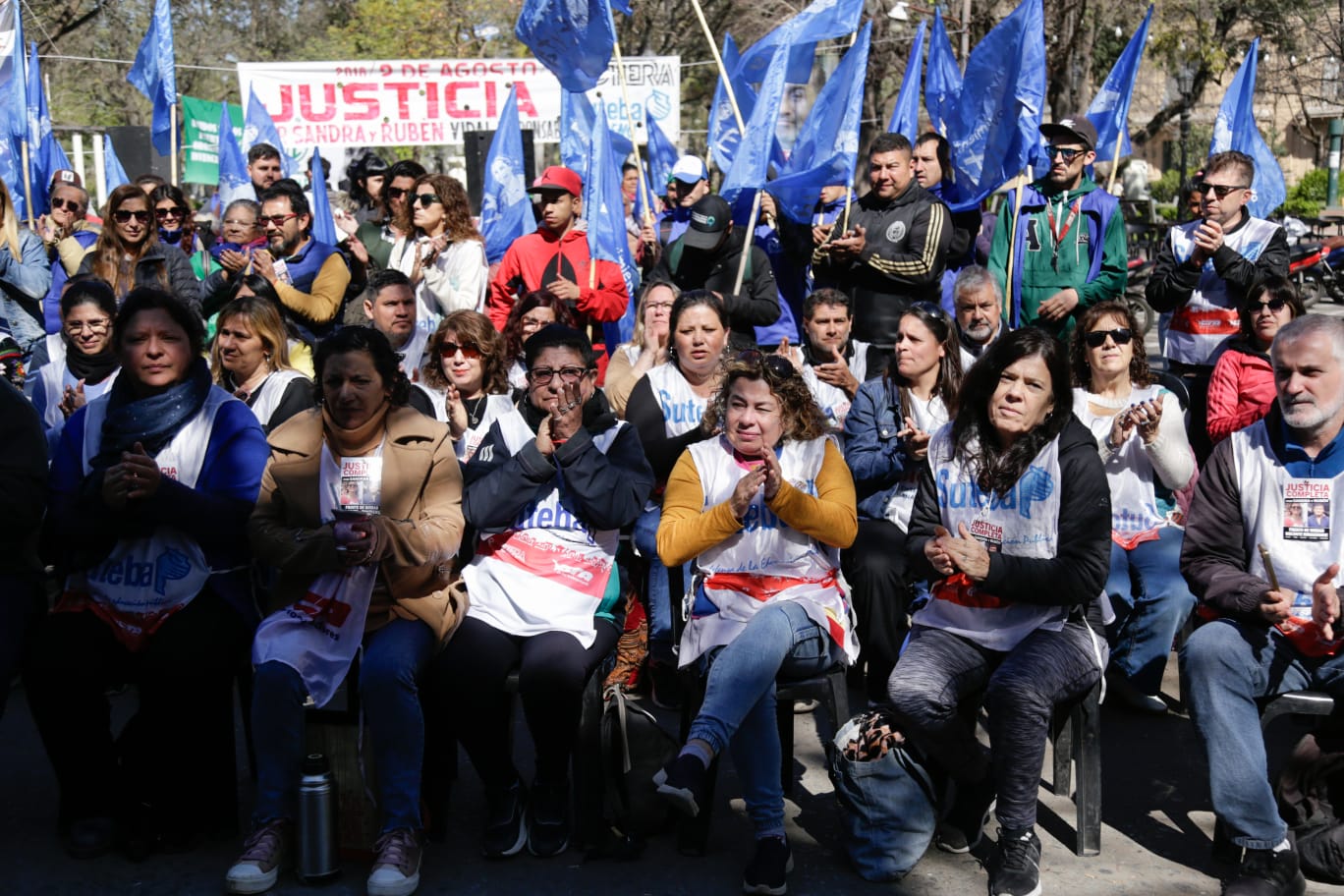 Roberto Baradel, Secretario General del SUTEBA, expresó: "Estamos presentes para escuchar los alegatos, acompañar a las familias y que se haga justicia para Sandra y Rubén, además de esperar que la Justicia tome la decisión de avanzar esta causa contra lxs responsables institucionales de ese momento. Queremos que haya Justicia Completa".