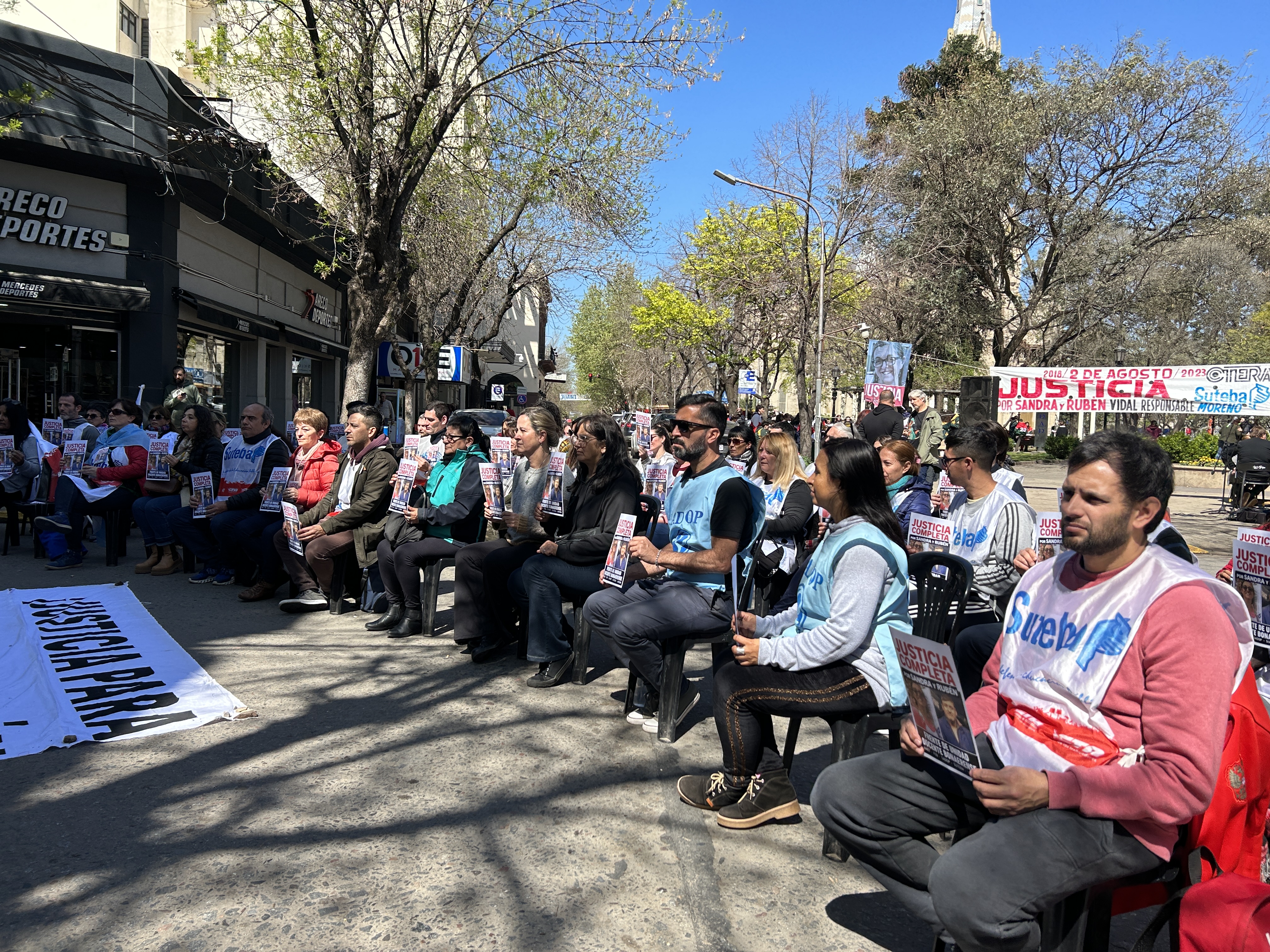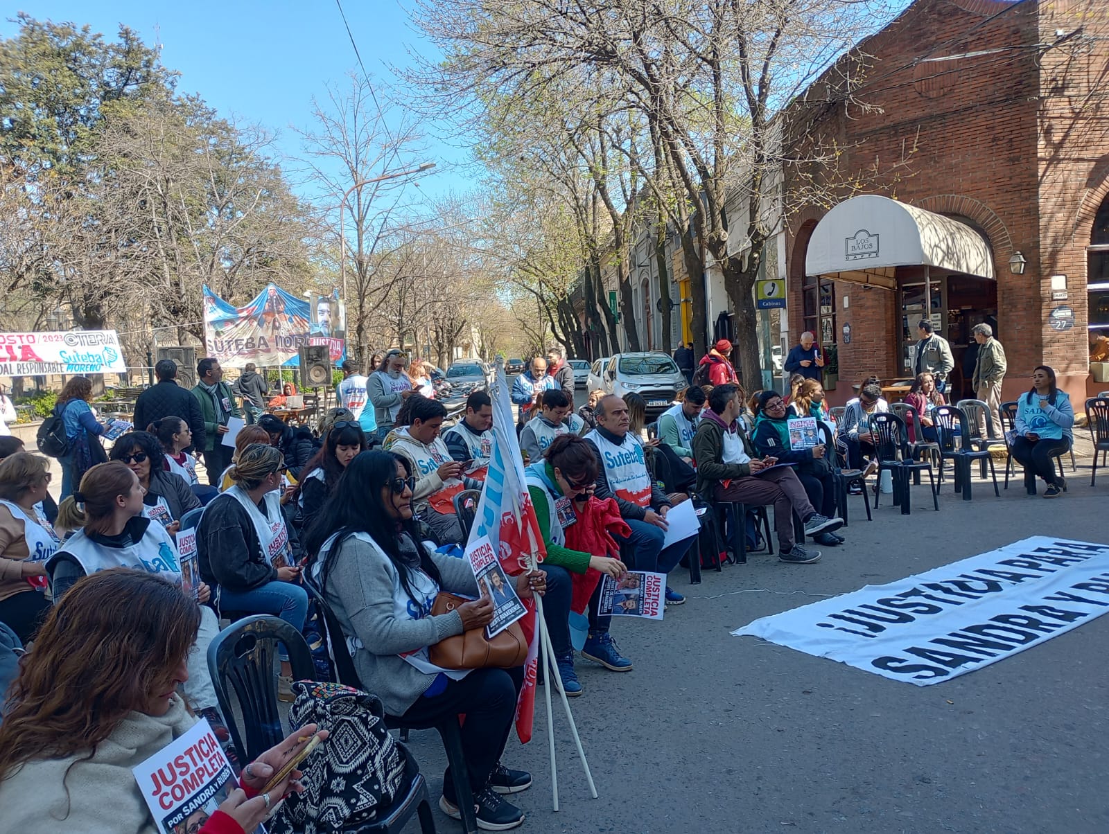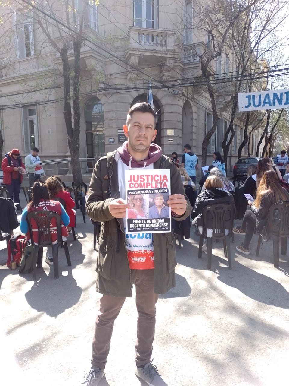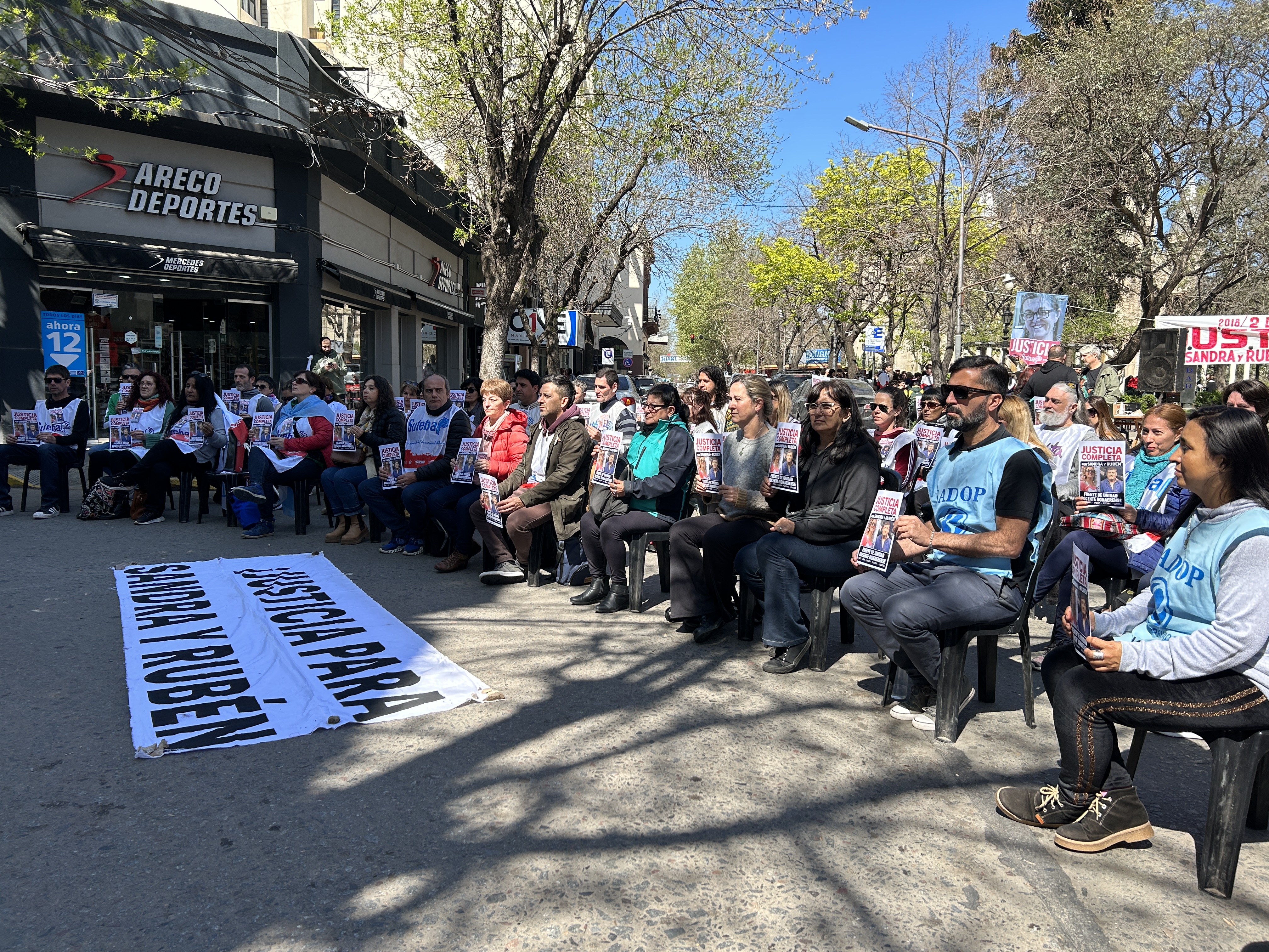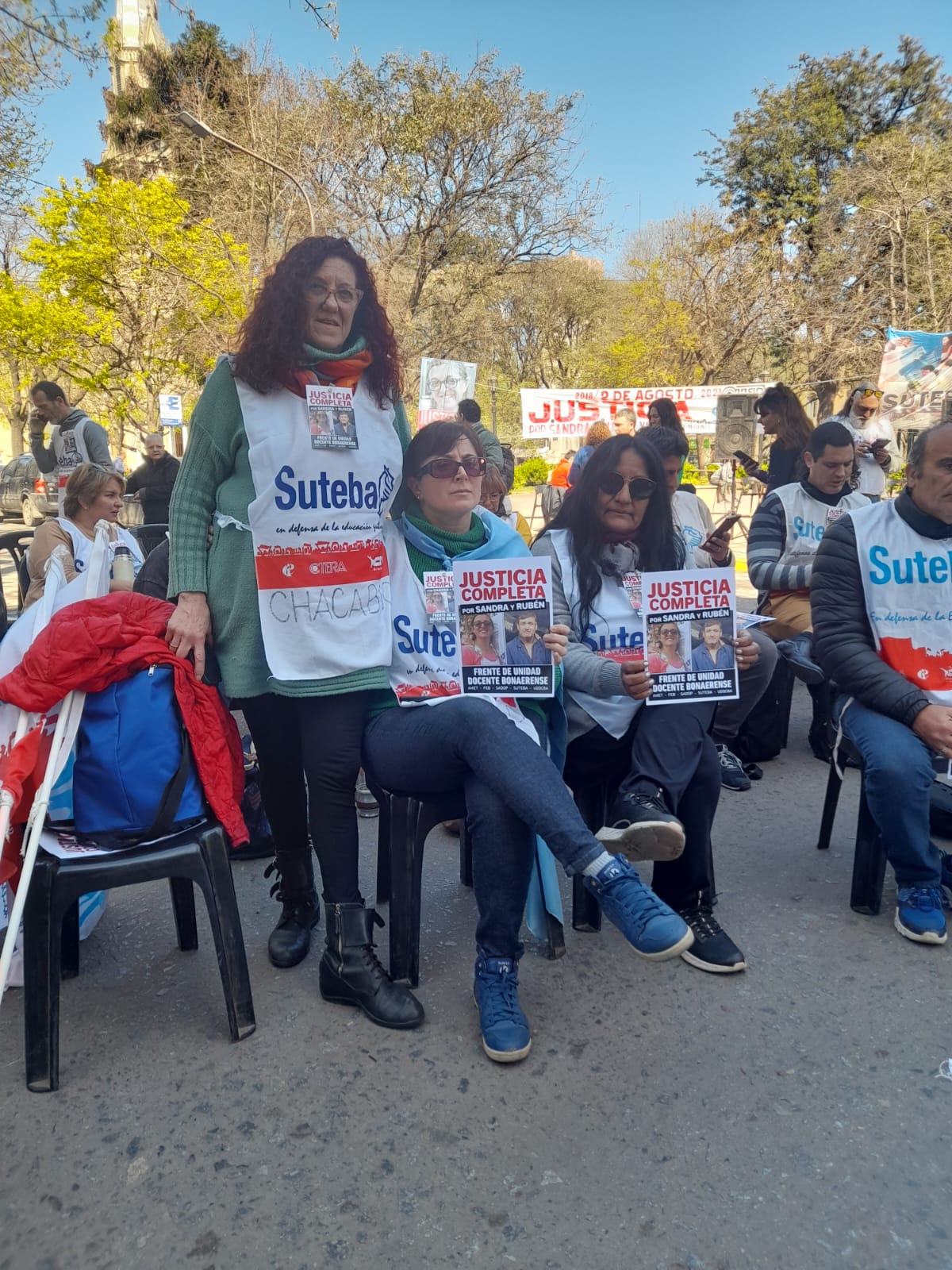 Roberto Baradel, Secretario General del SUTEBA, expresó: "Estamos presentes para escuchar los alegatos, acompañar a las familias y que se haga justicia para Sandra y Rubén, además de esperar que la Justicia tome la decisión de avanzar esta causa contra lxs responsables institucionales de ese momento. Queremos que haya Justicia Completa".