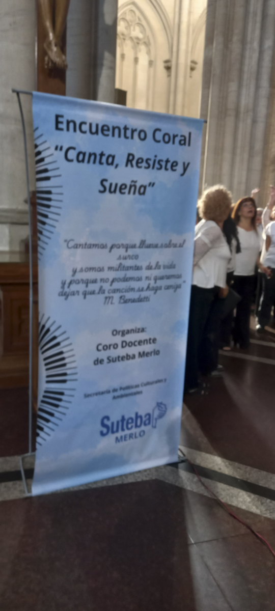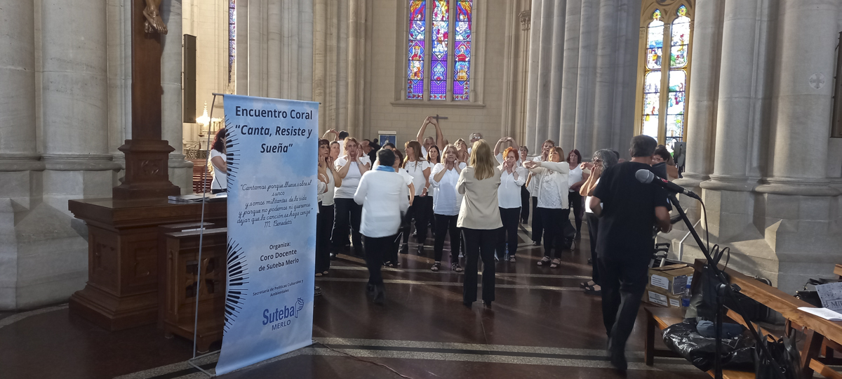 Este fin de semana se realizó el primer Encuentro Coral "Canta, Resiste y Sueña", organizado por el Coro del SUTEBA Merlo, la Secretaría de Políticas Culturales y Ambientales del SUTEBA Provincia y la Asociación de Directores de Coro de la República Argentina (ADICORA).