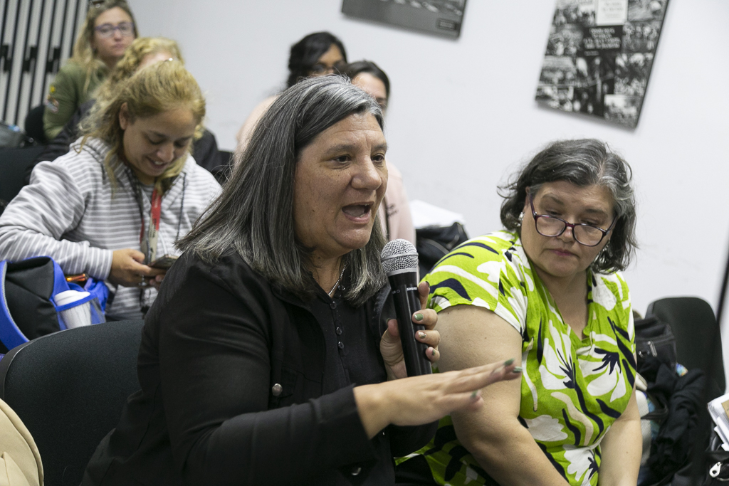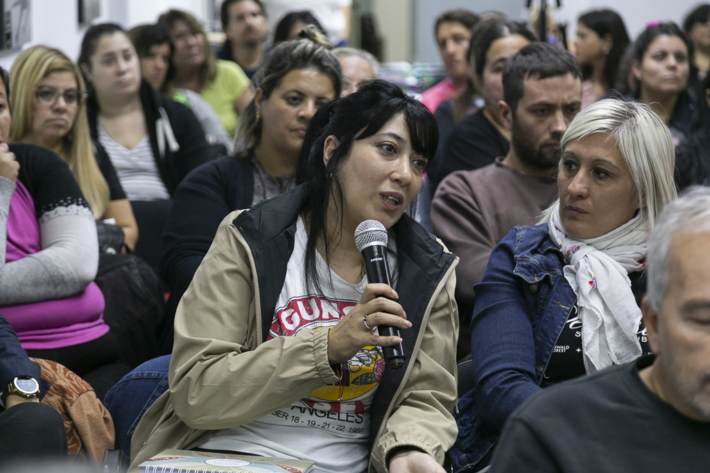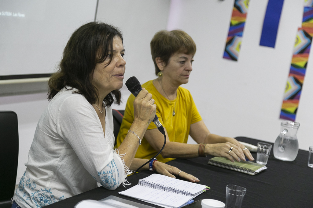 María Elisa Semino, Secretaria de Comunicaciones del Sindicato, dio la bienvenida y fue la moderadora de la actividad.