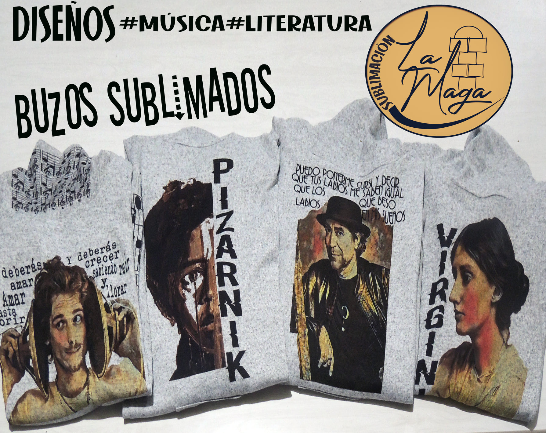 La Maga realiza sublimaciones en remeras, buzos, tazas y vasos con frases e imágenes para regalar y regalarte: Simone de Beauvoir, Alejandra Pizarnik, Rosa de Luxemburgo, Charly García, el flaco Spinetta y más.