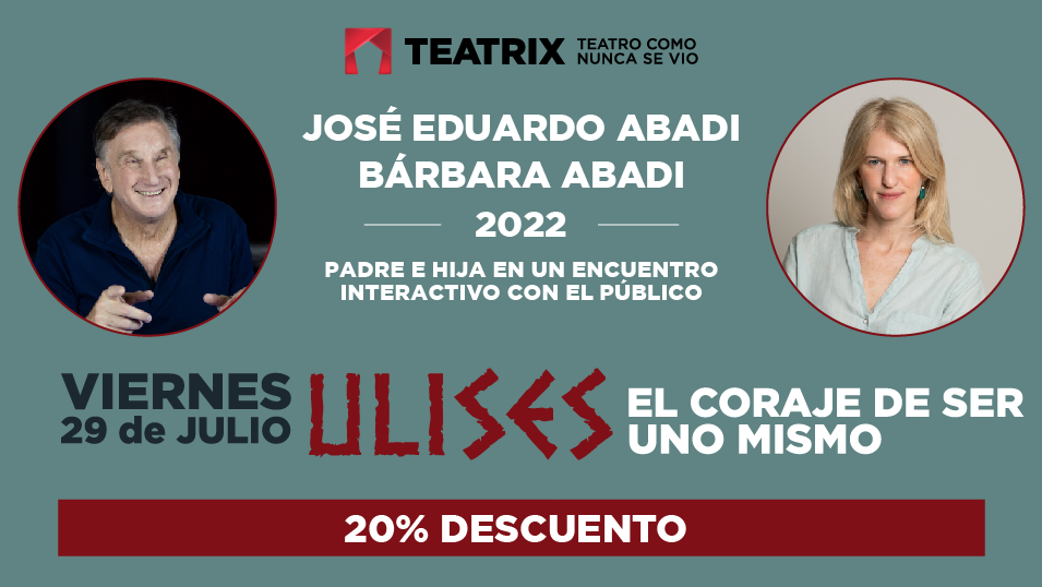 Teatrix te invita a vivir una experiencia única este 29 de julio desde las 12 hs + Zoom íntimo e interactivo el 31 de julio a las 21 hs, en el que vas a poder hacer tus preguntas al Dr. José Abadi y la Lic. Bárbara Abadi.