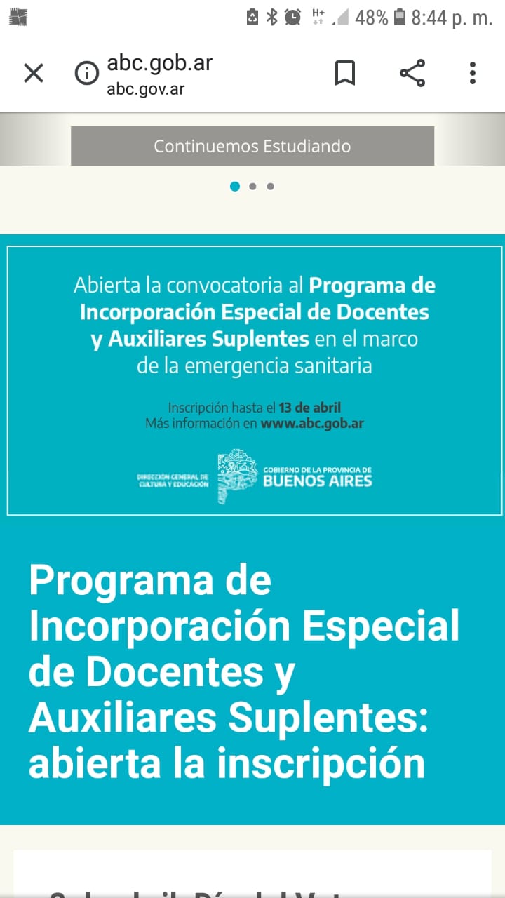 PROGRAMA DE INCORPORACIÓN ESPECIAL DE DOCENTES Y AUXILIARES SUPLENTES EN EL MARCO DE LA EMERGENCIA SANITARIA